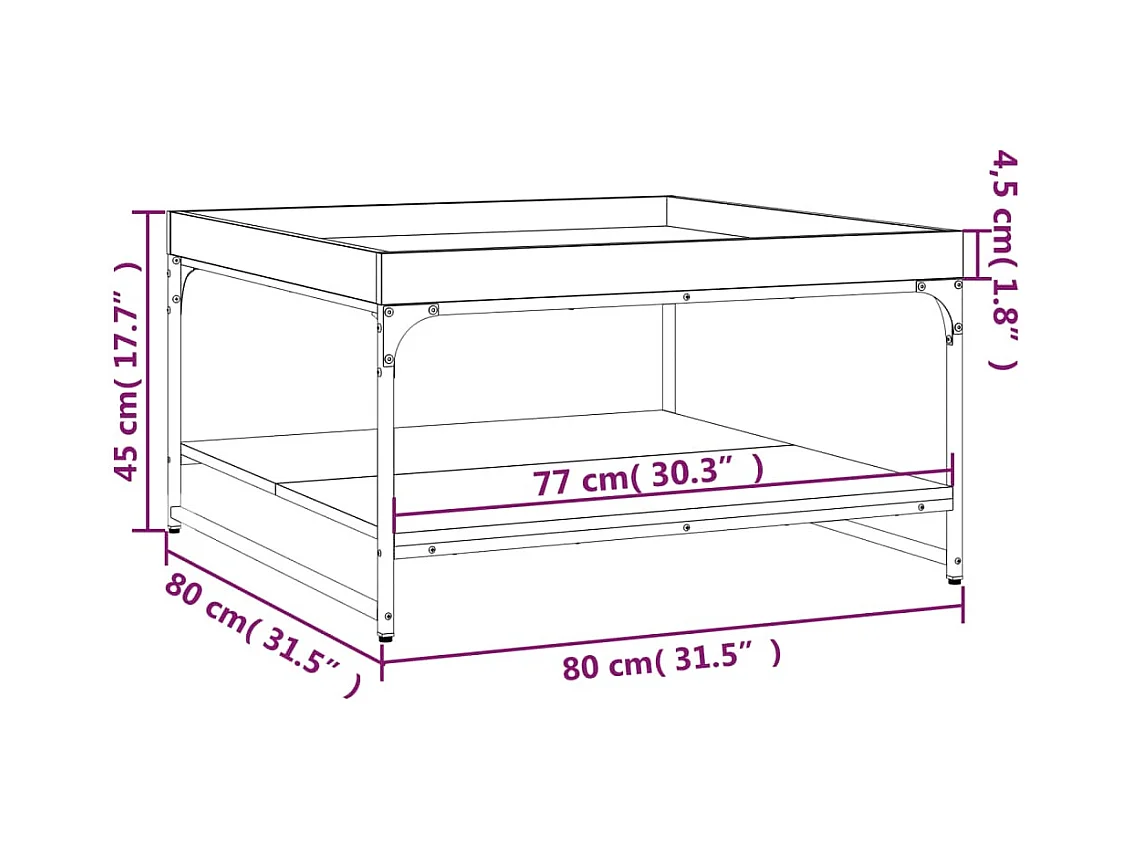 Mesa de centro | Mesa auxiliar madera de ingeniería gris hormigón 80x80x40 cm SHL3318