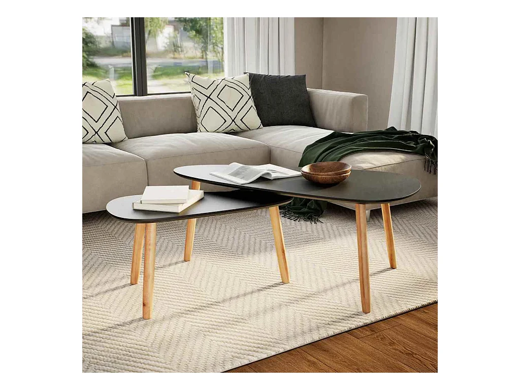Set de mesas de centro 2 unidades madera maciza de pino negro