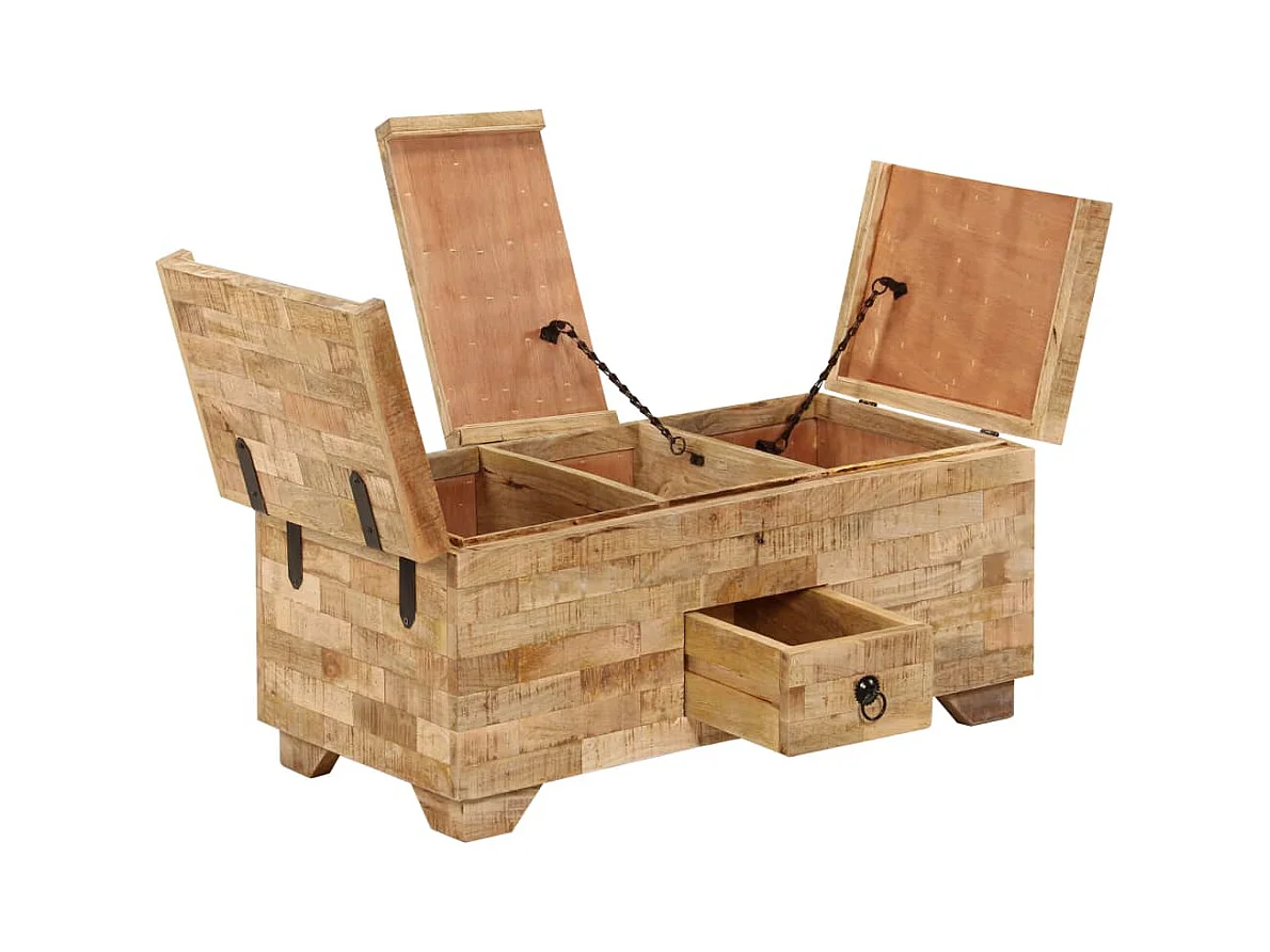 Mesa de centro baúl de madera maciza reciclada 80x40x35 cm ES16545