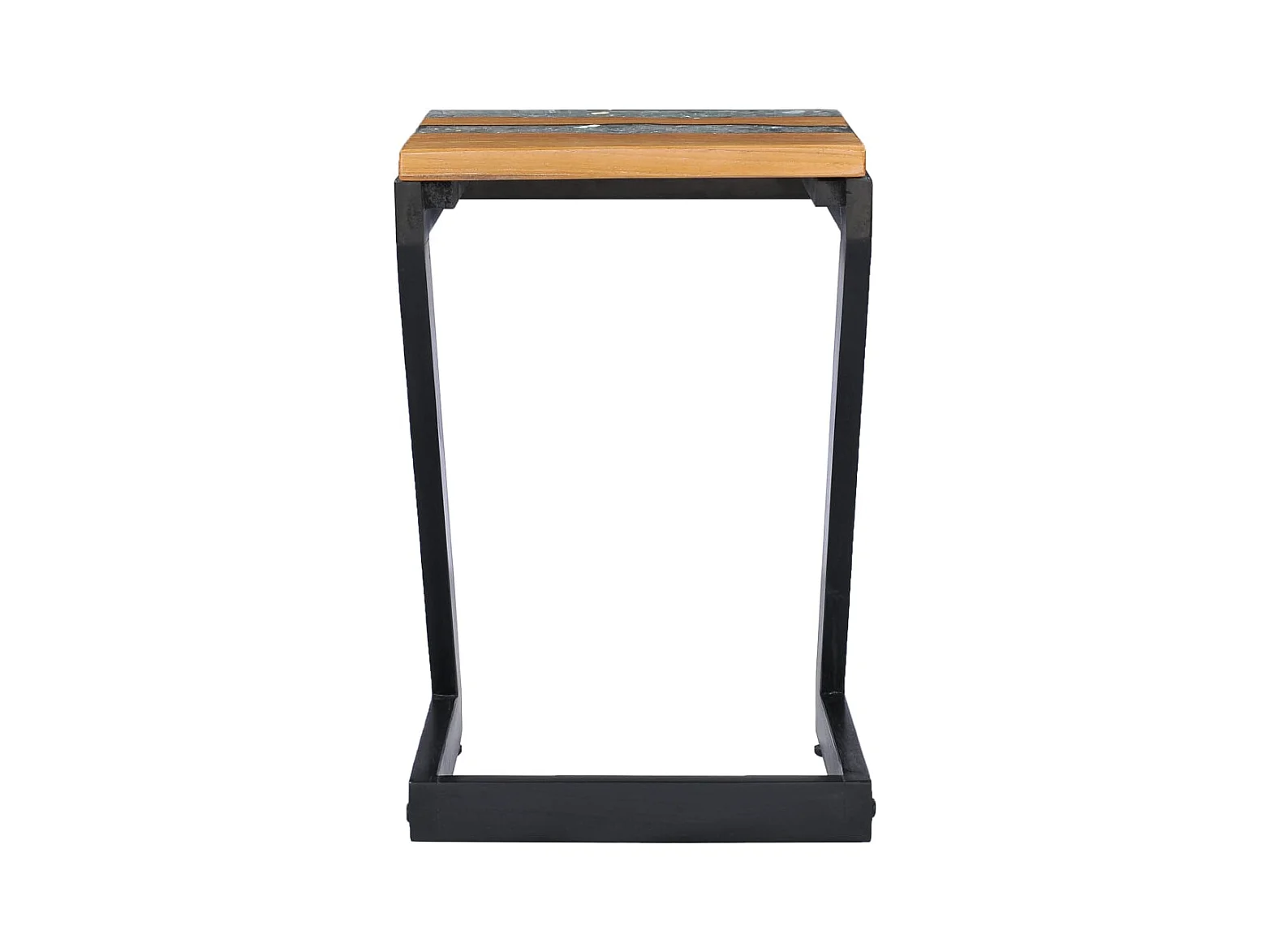 AURA - Mesa de centro cuadrada de estilo industrial - 60x60x45 cm - Mesa de centro con decoración de madera