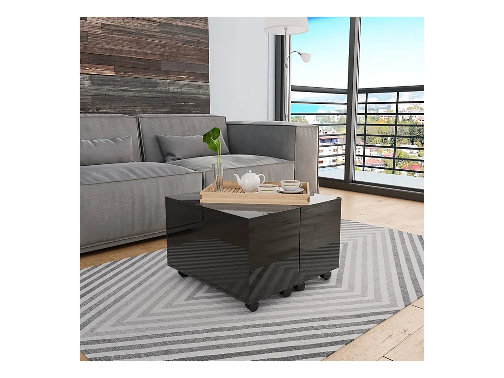 Mesa de centro | Mesa auxiliar con luz LED madera ingeniería negra 50x50x45 cm SHL21464