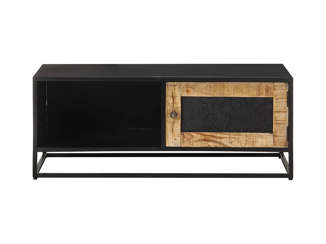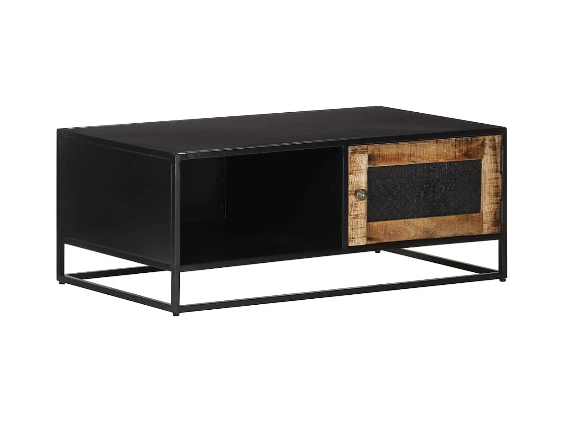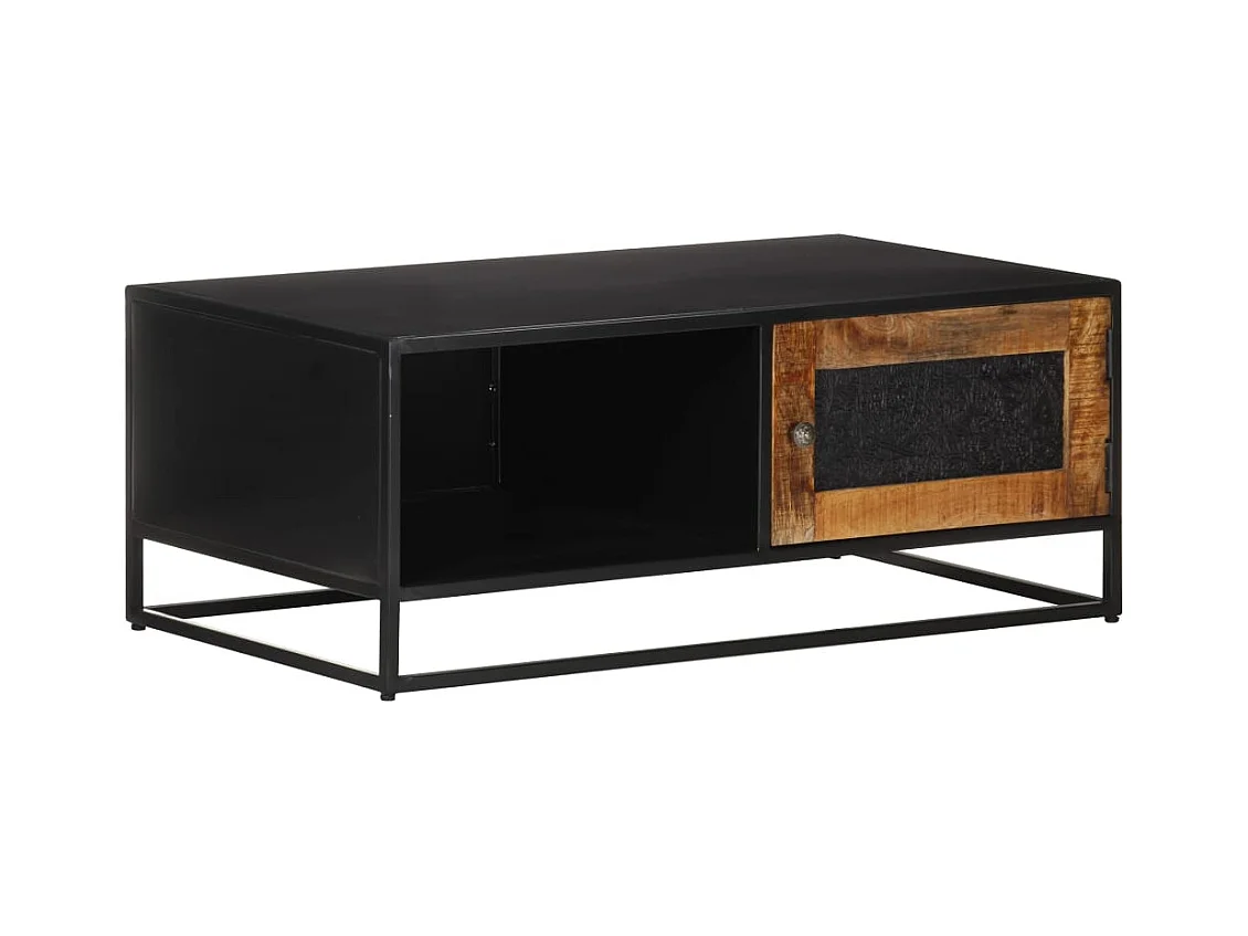 Mesa de centro-Mesa auxiliar patas metal OSLO madera maciza marrón 85x50x45cm SHL1283