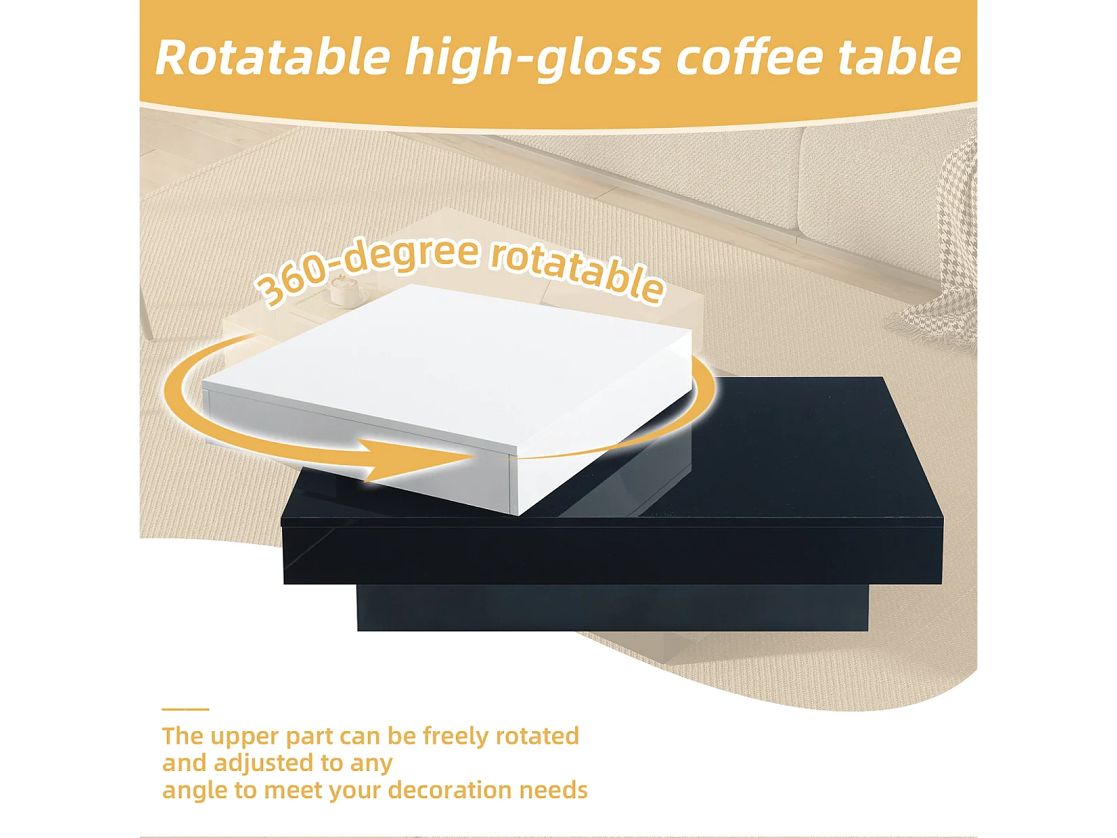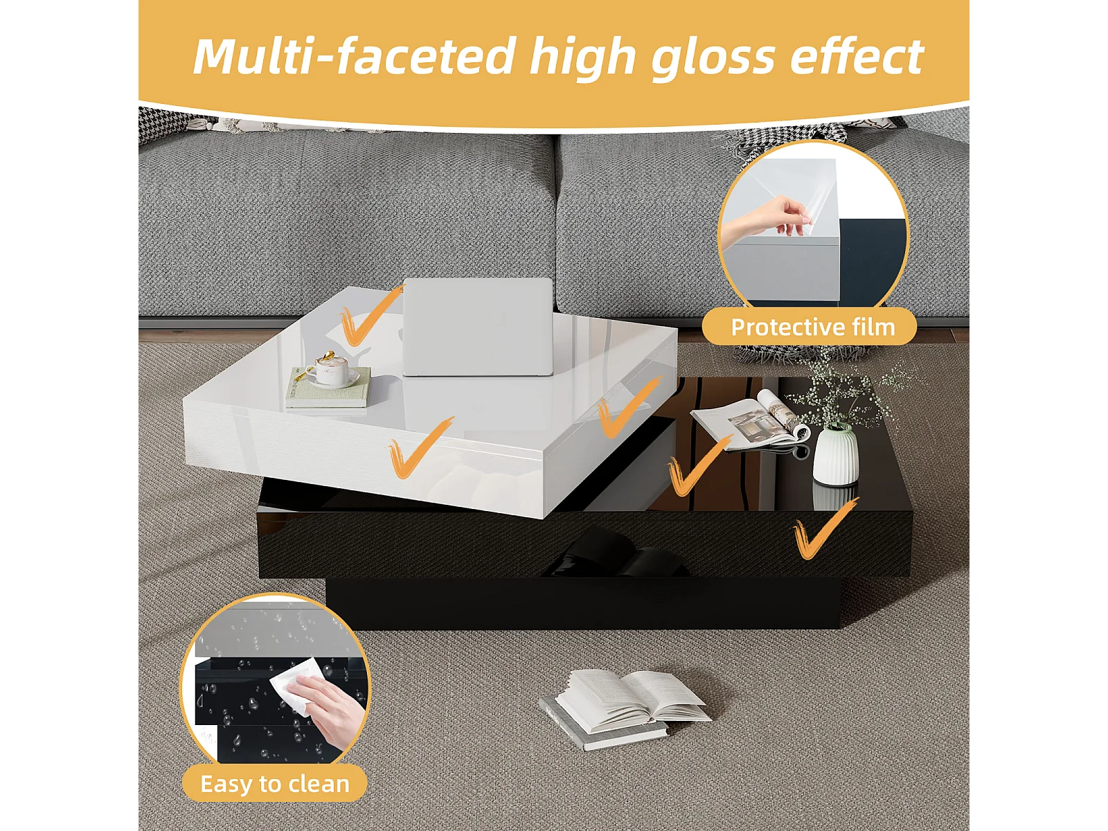Mesa de centro moderna - Mesa de centro giratoria - para oficina, sala de estar, blanco y negro, 103 x 60 x 35 cm
