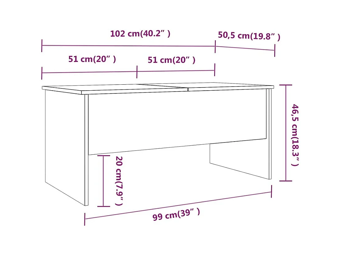 Mesa de centro negra 102x50,5x46,5 cm madera de ingeniería