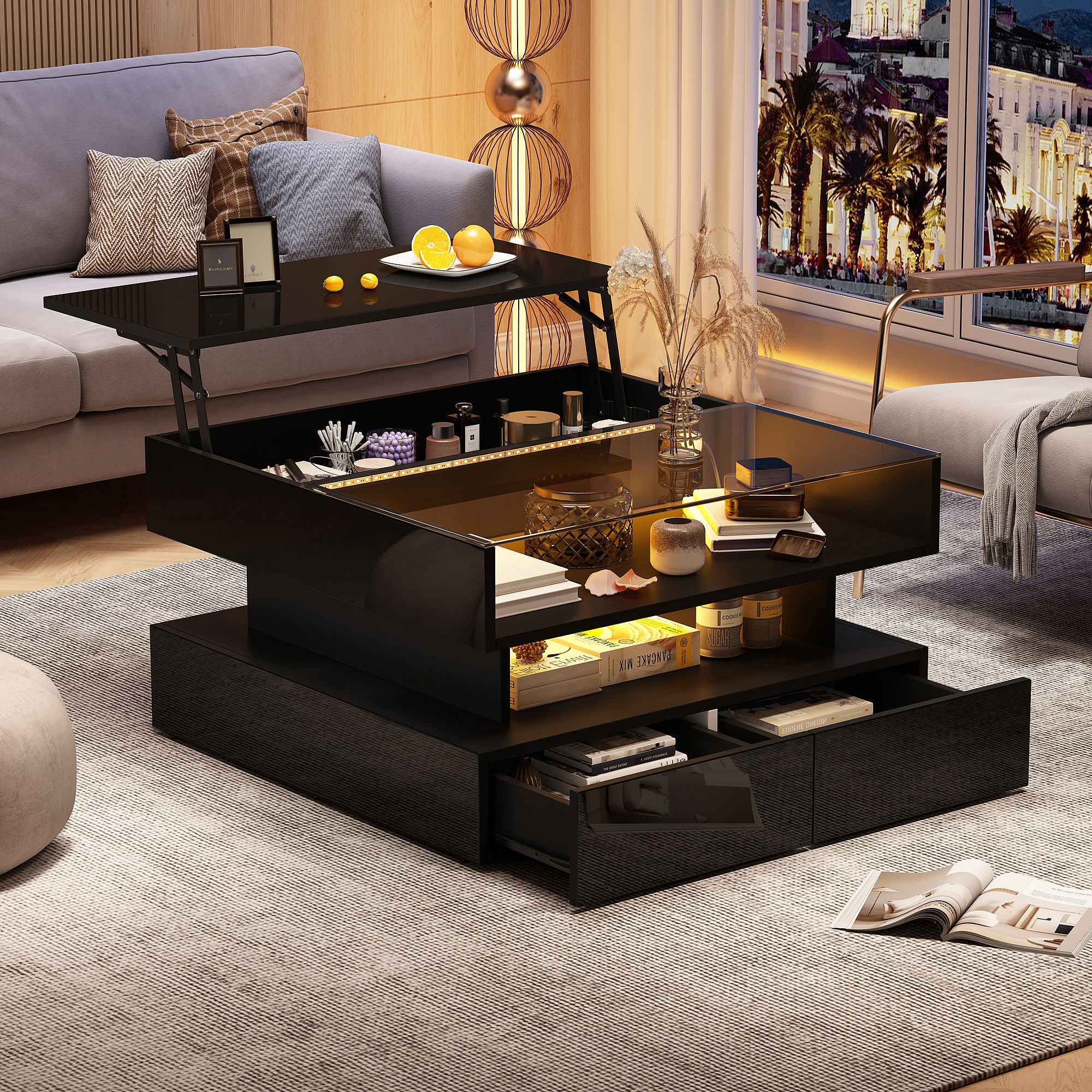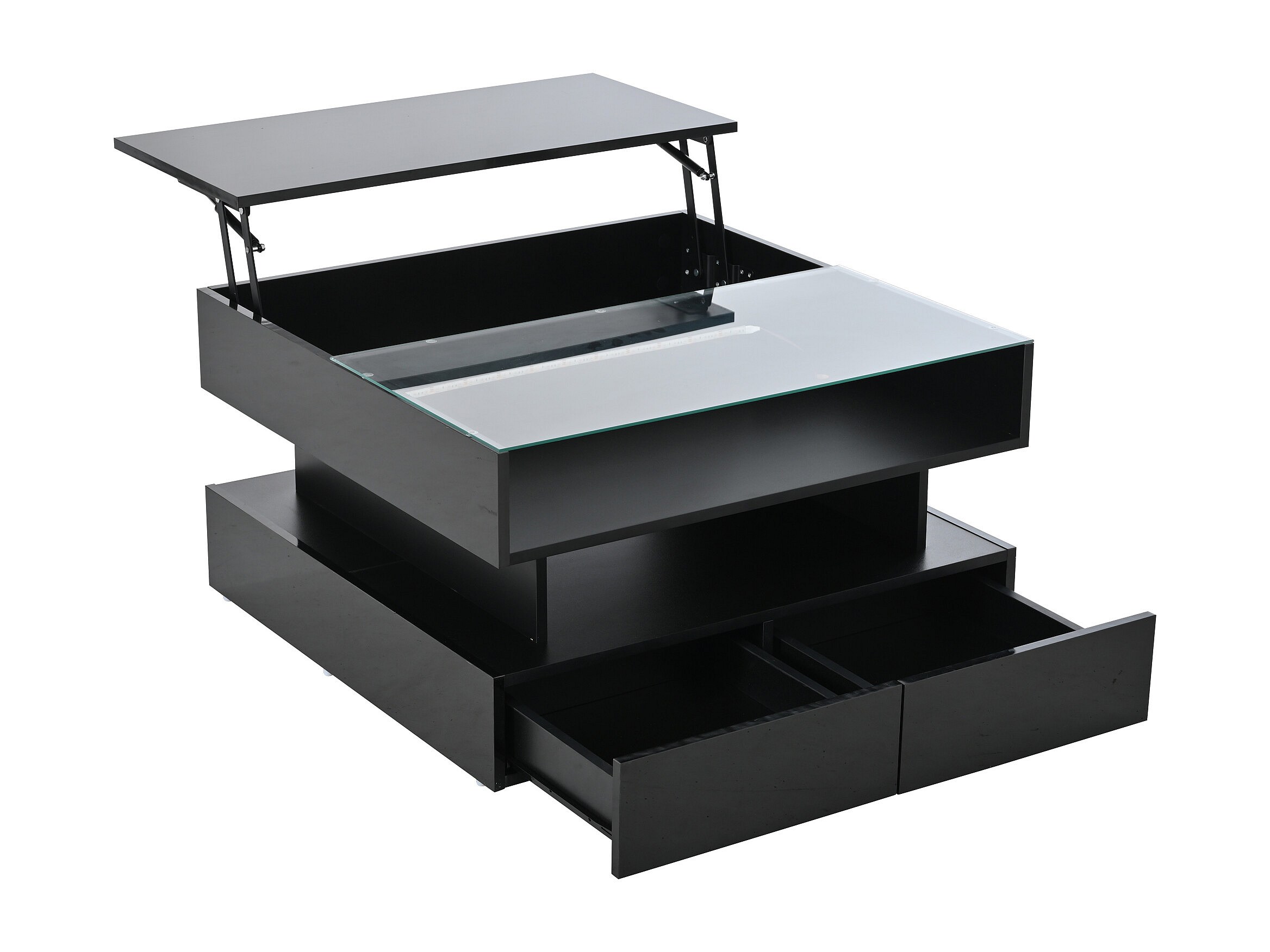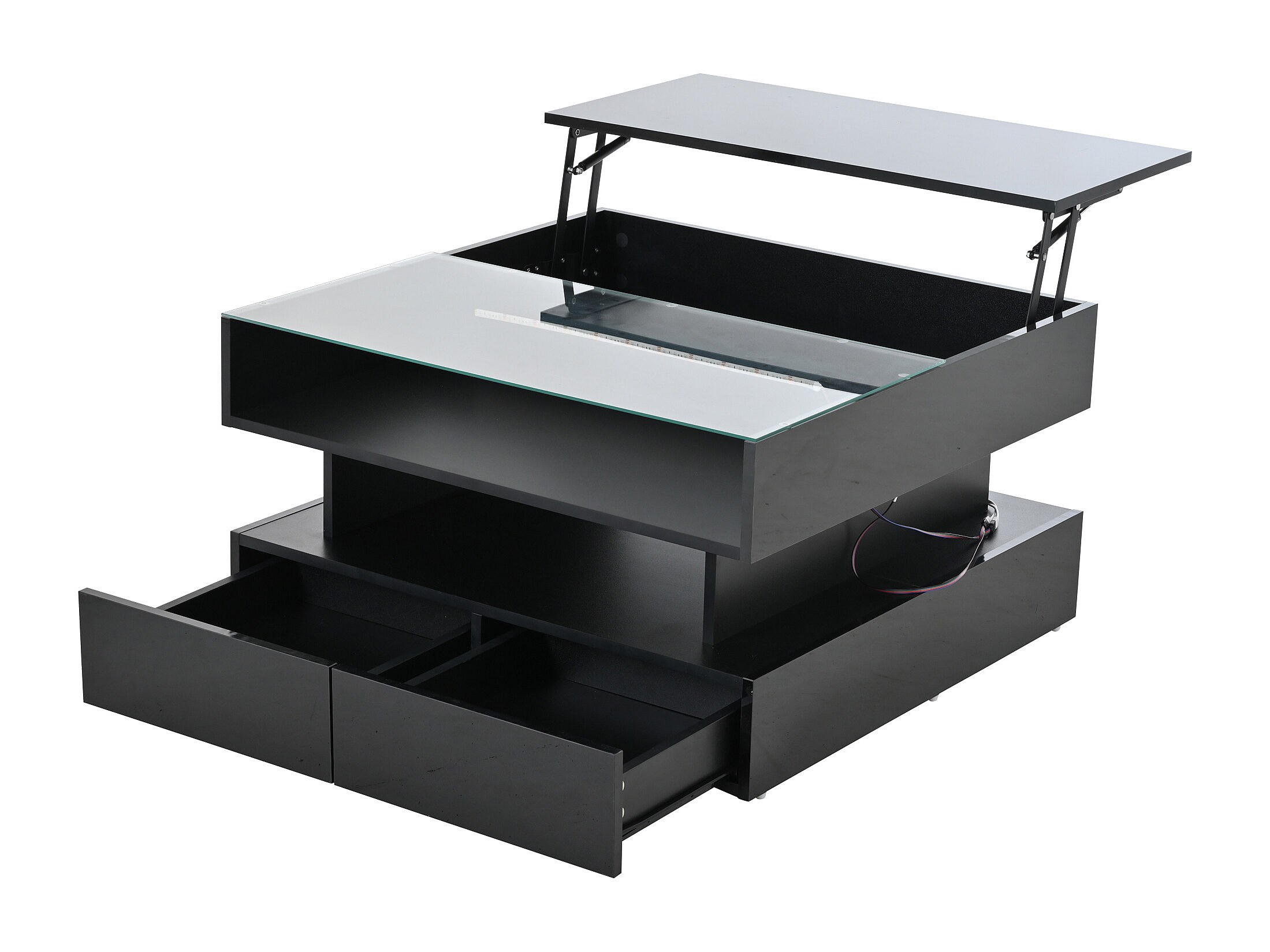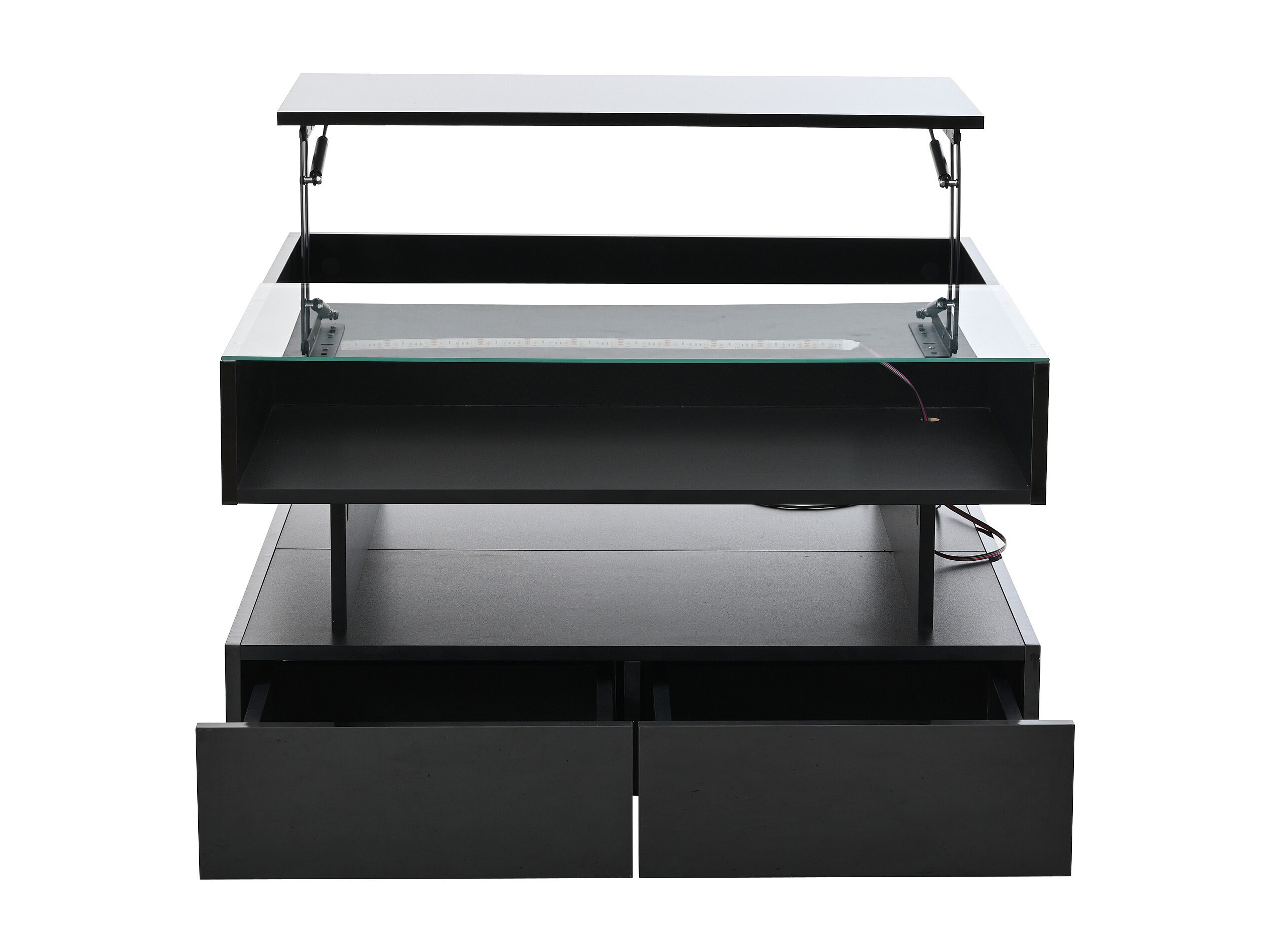 Mesa de centro negra con iluminación LED - Mesa de centro con 2 cajones y tapa elevable - almacenaje abierto