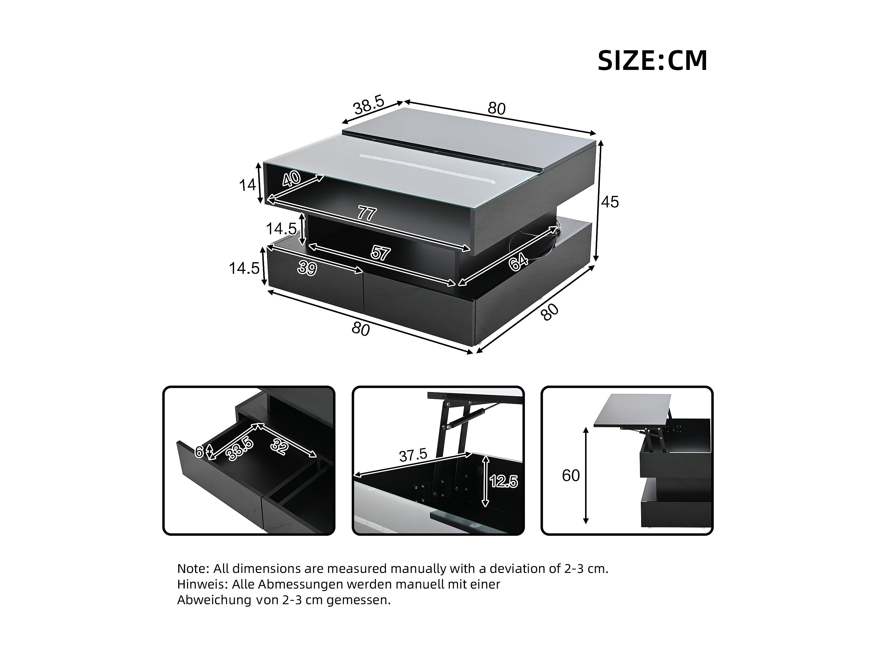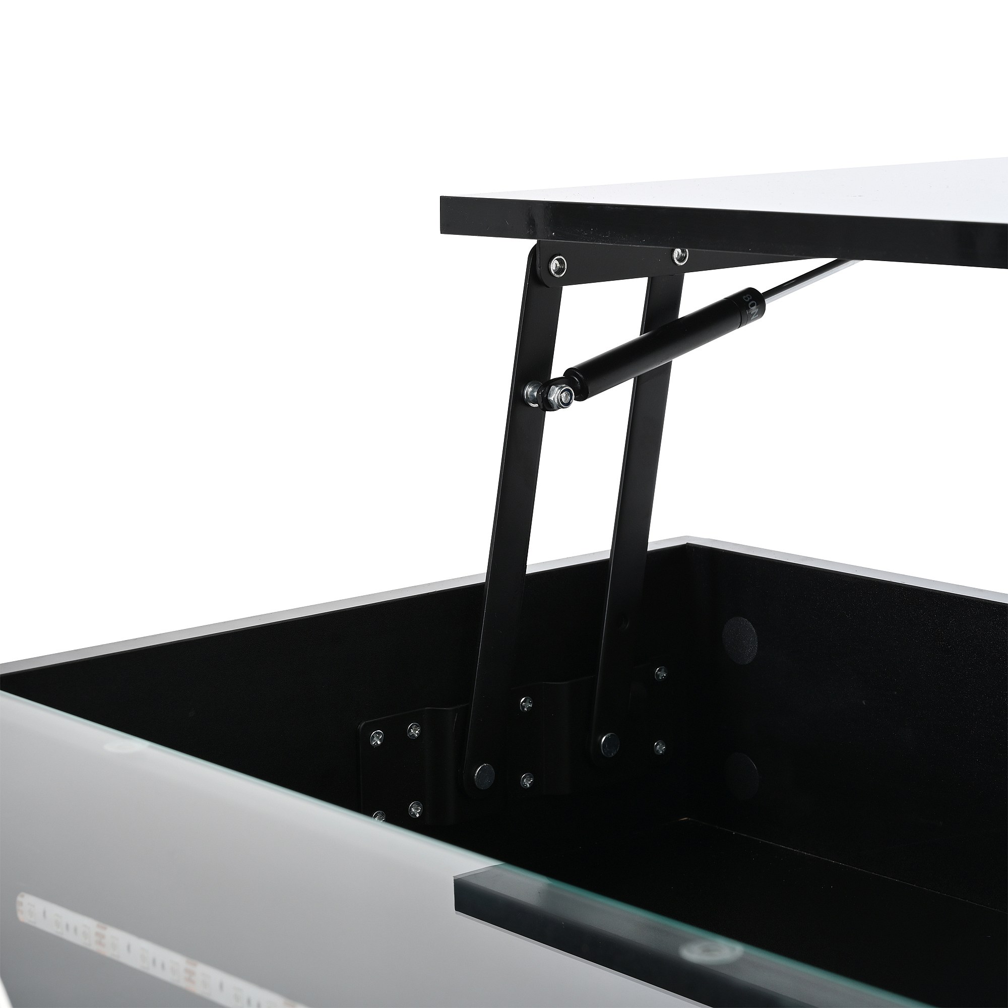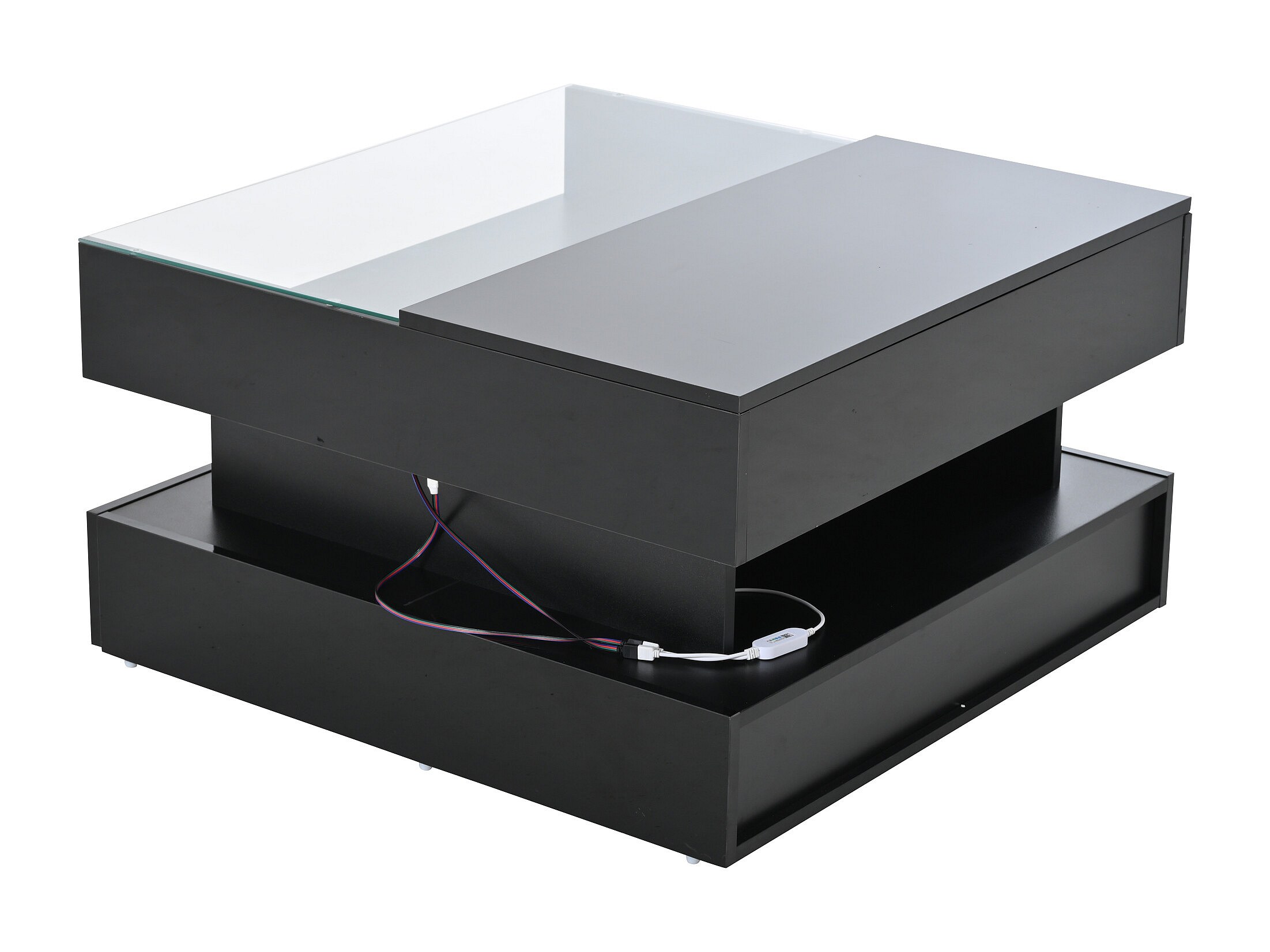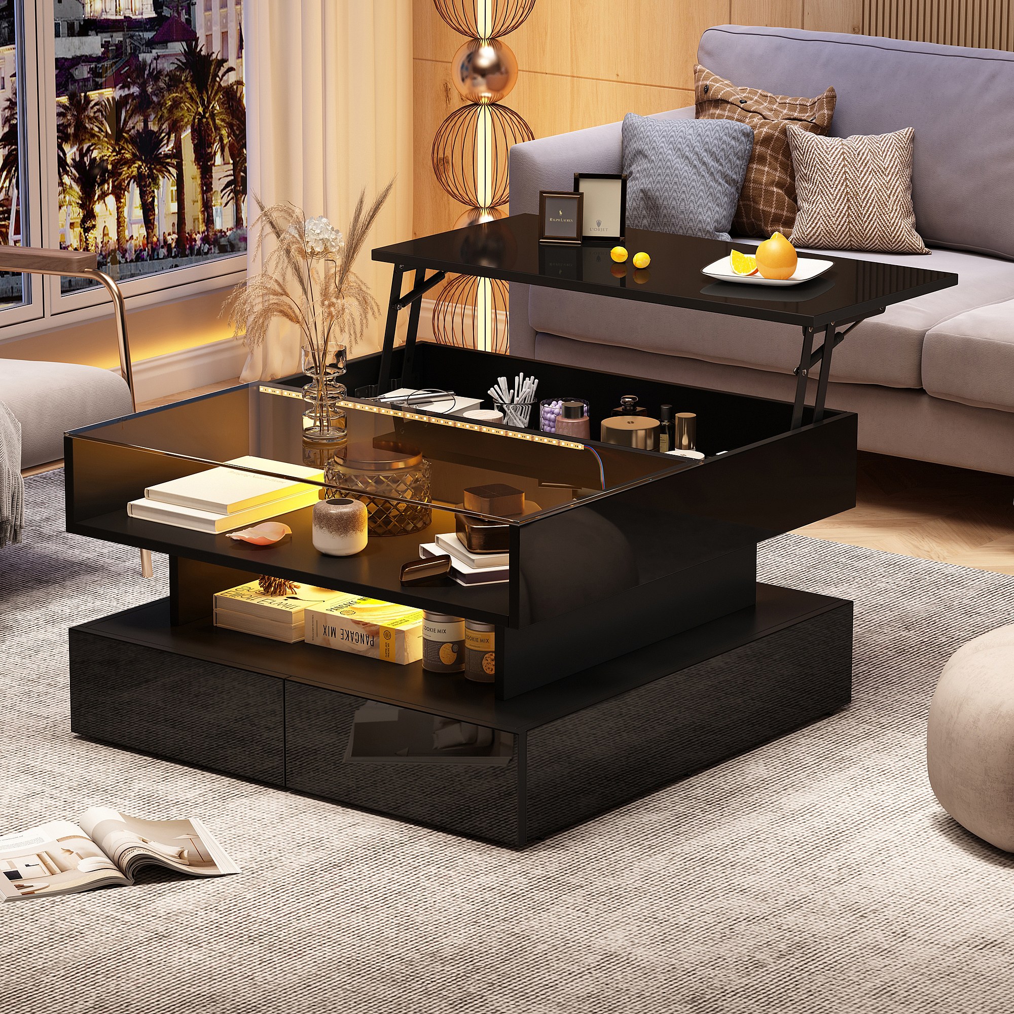 Mesa de centro negra con iluminación LED - Mesa de centro con 2 cajones y tapa elevable - almacenaje abierto