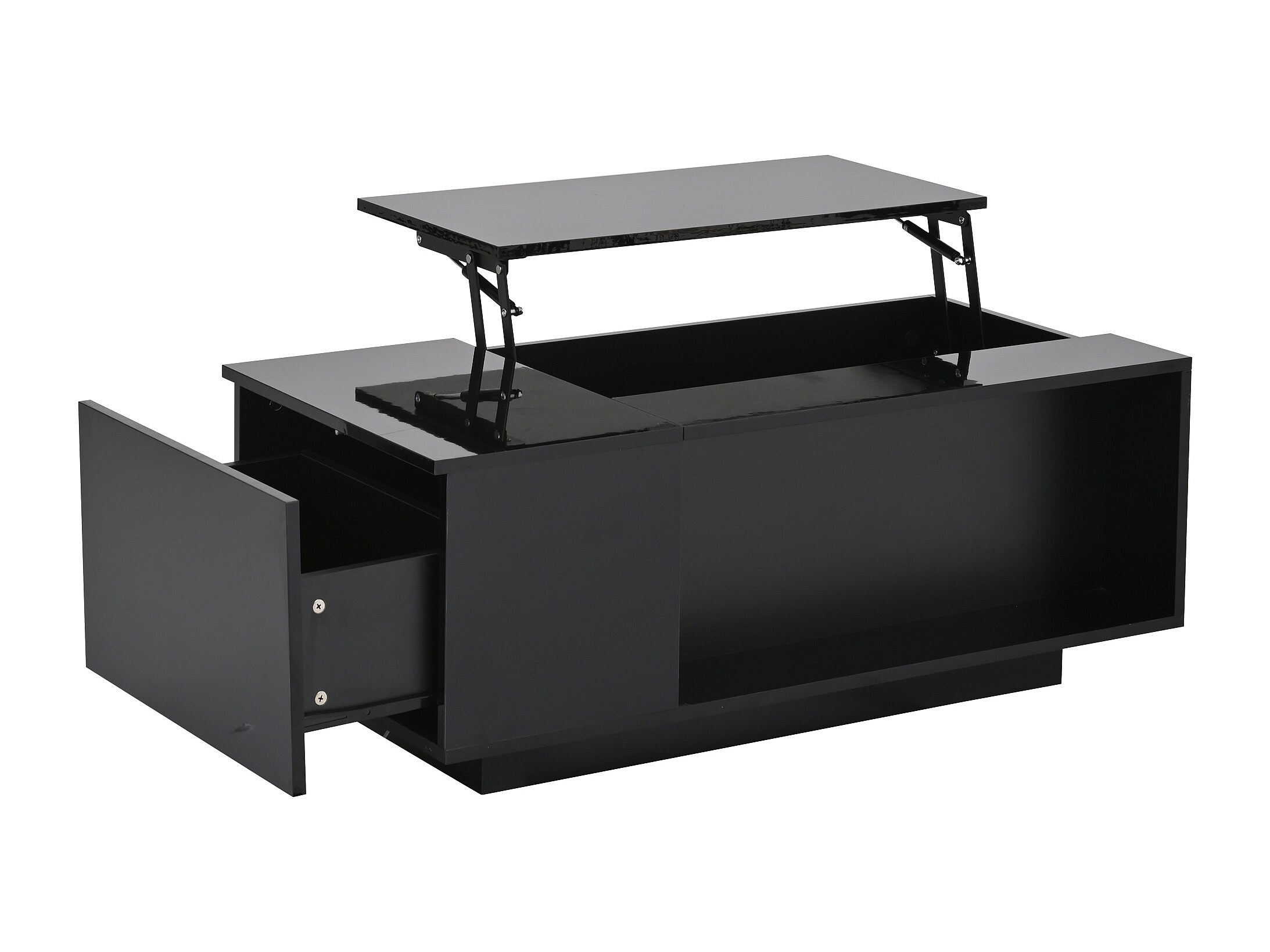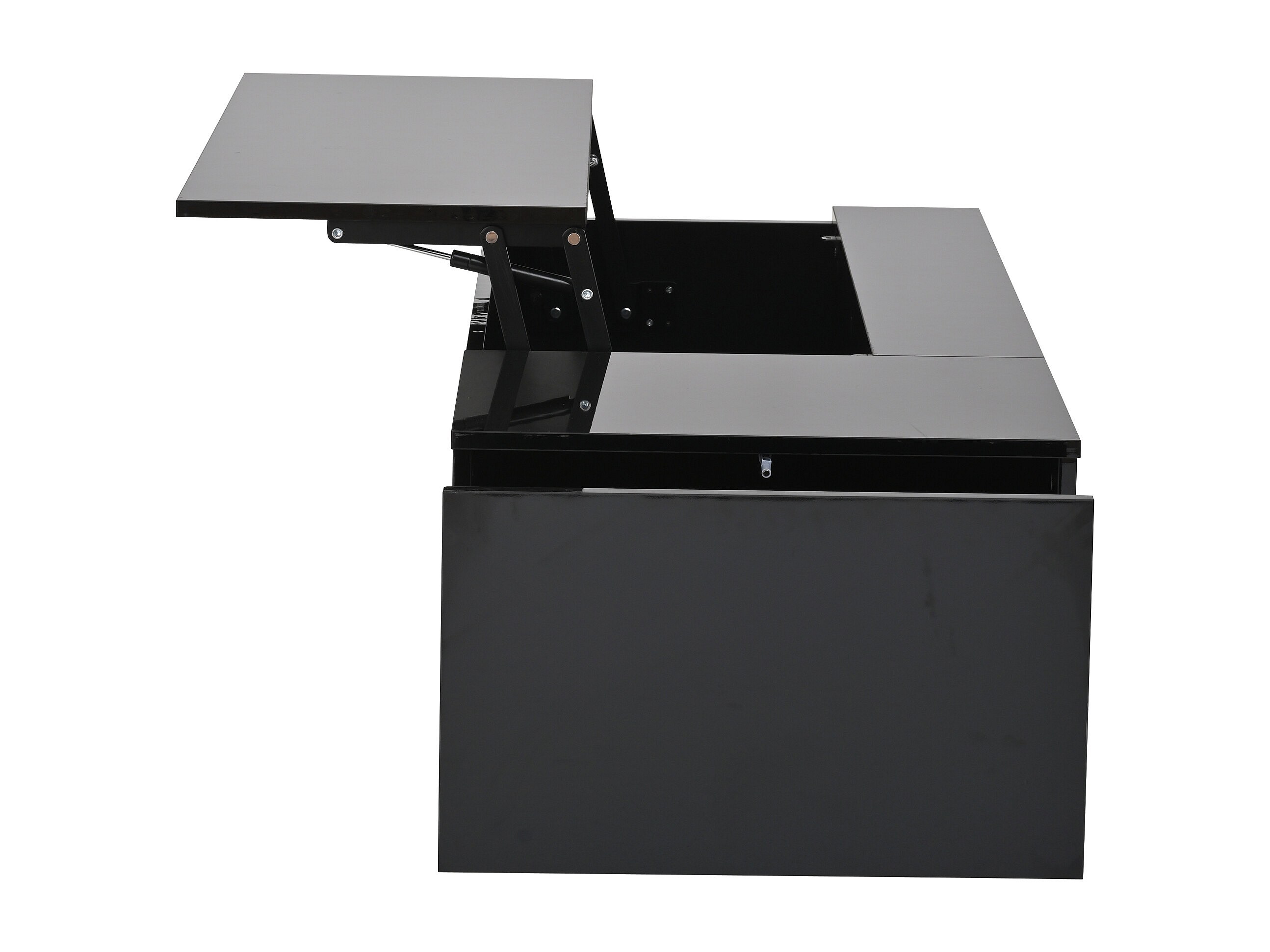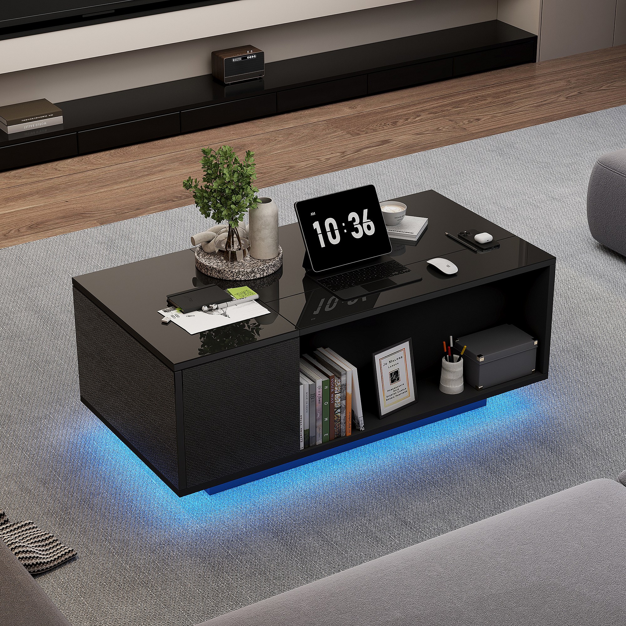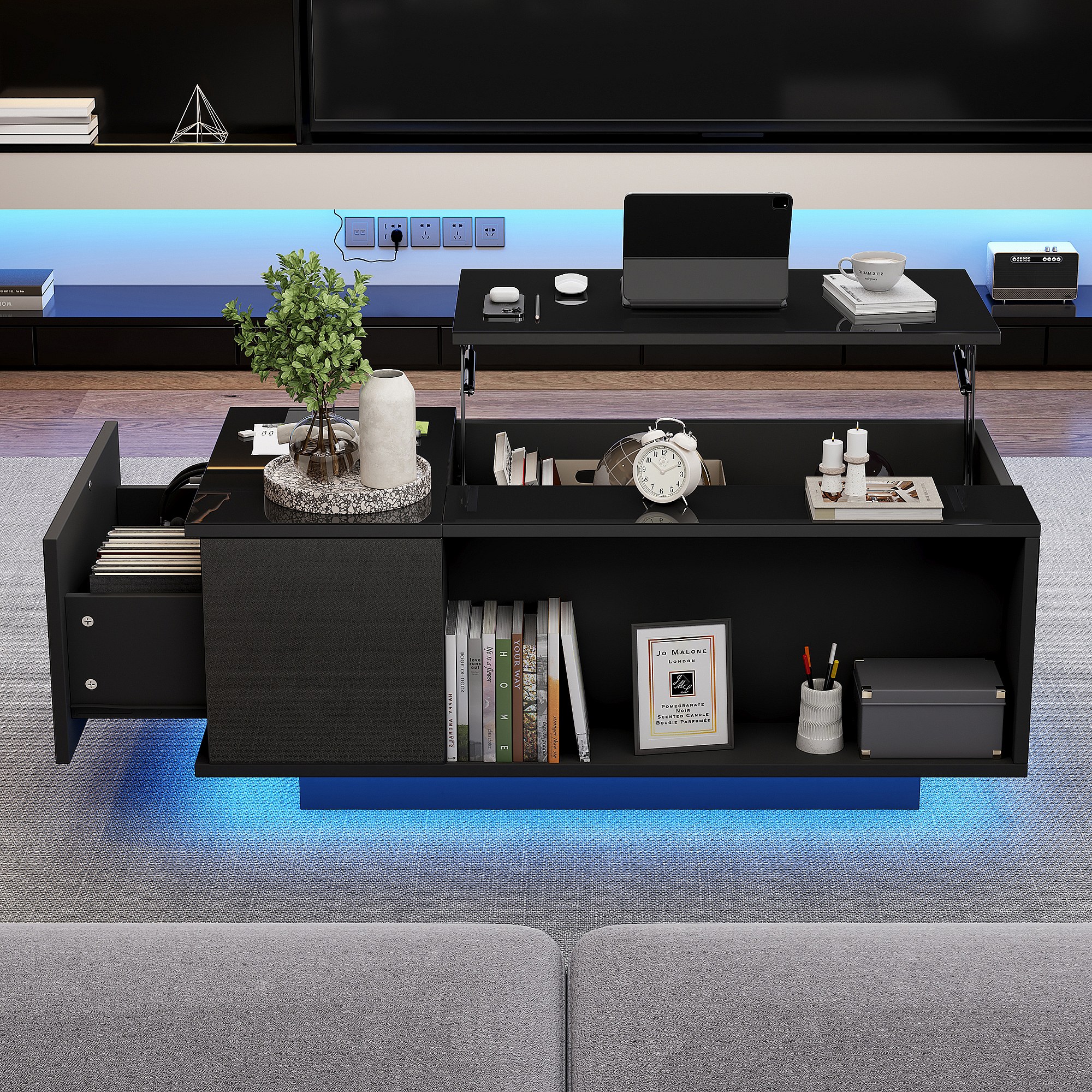 Mesa de centro negra con tablero regulable en altura - Mesa de centro con iluminación LED y 1 cajón - almacenaje abierto