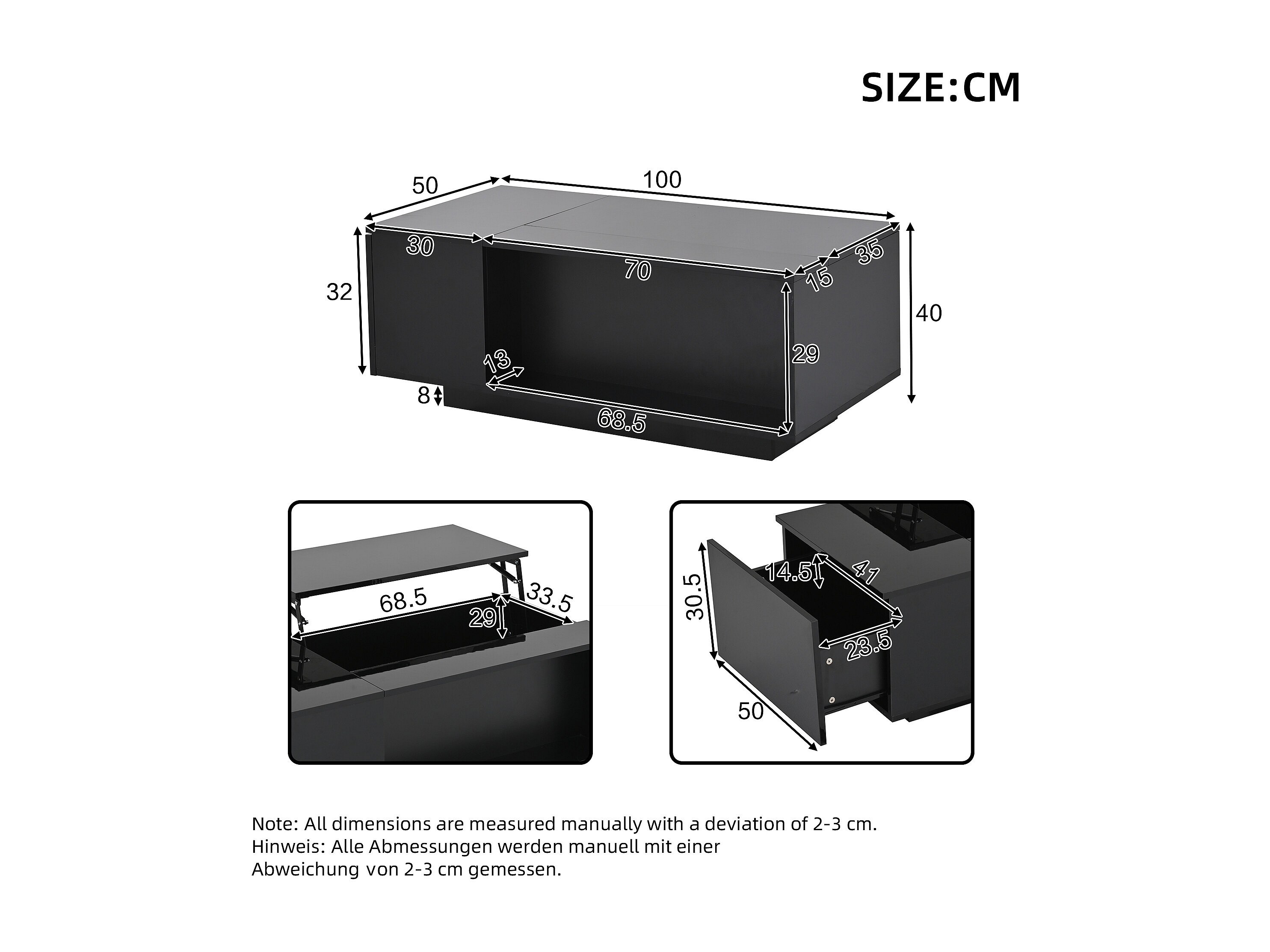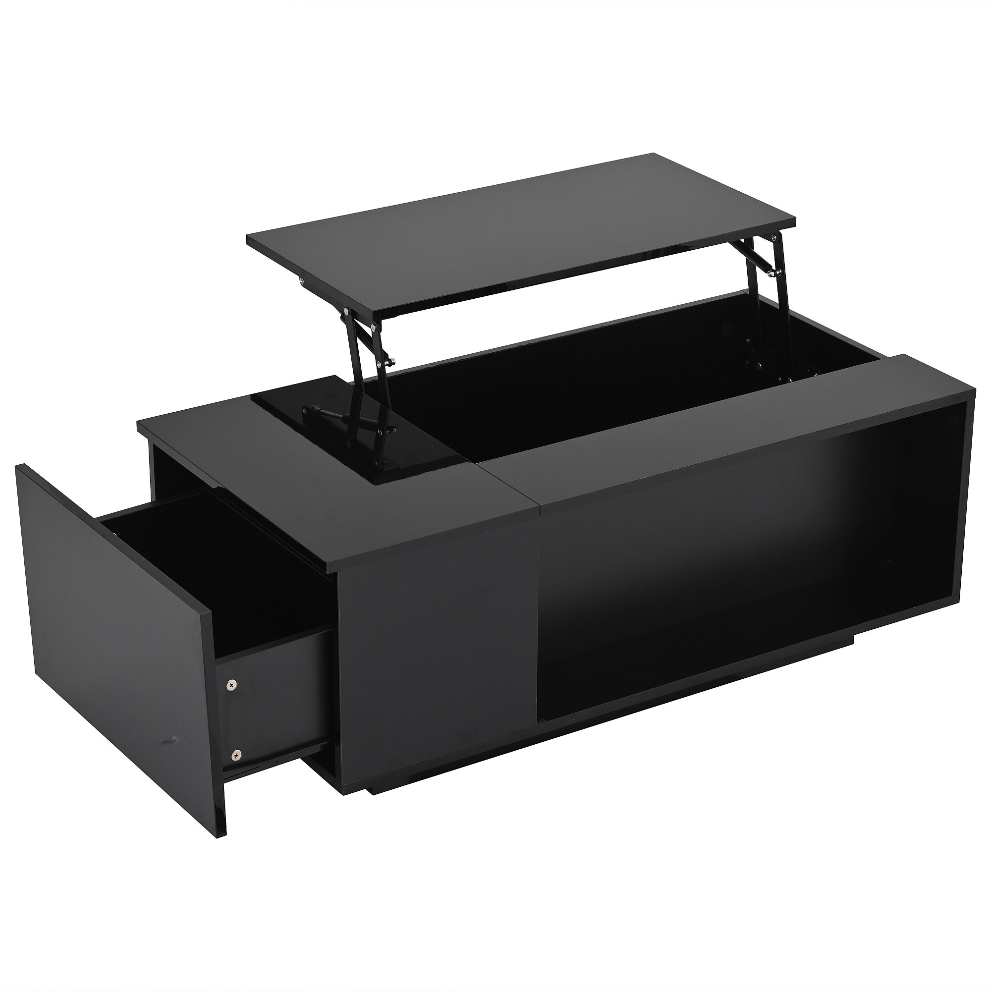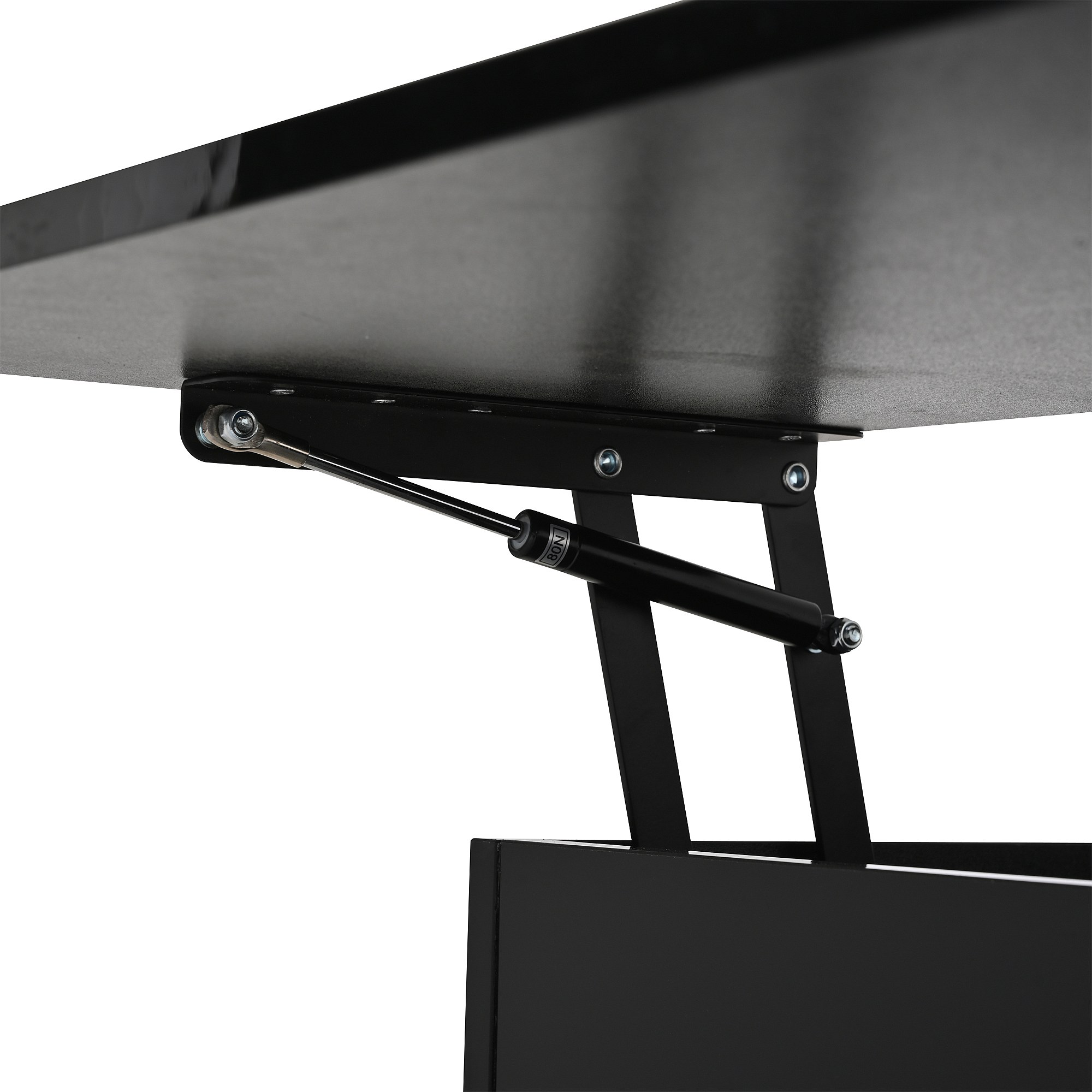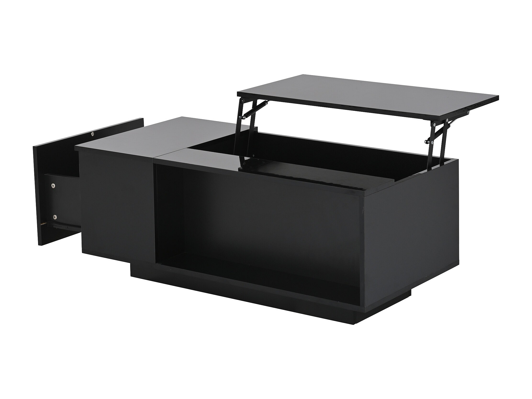 Mesa de centro negra con tablero regulable en altura - Mesa de centro con iluminación LED y 1 cajón - almacenaje abierto