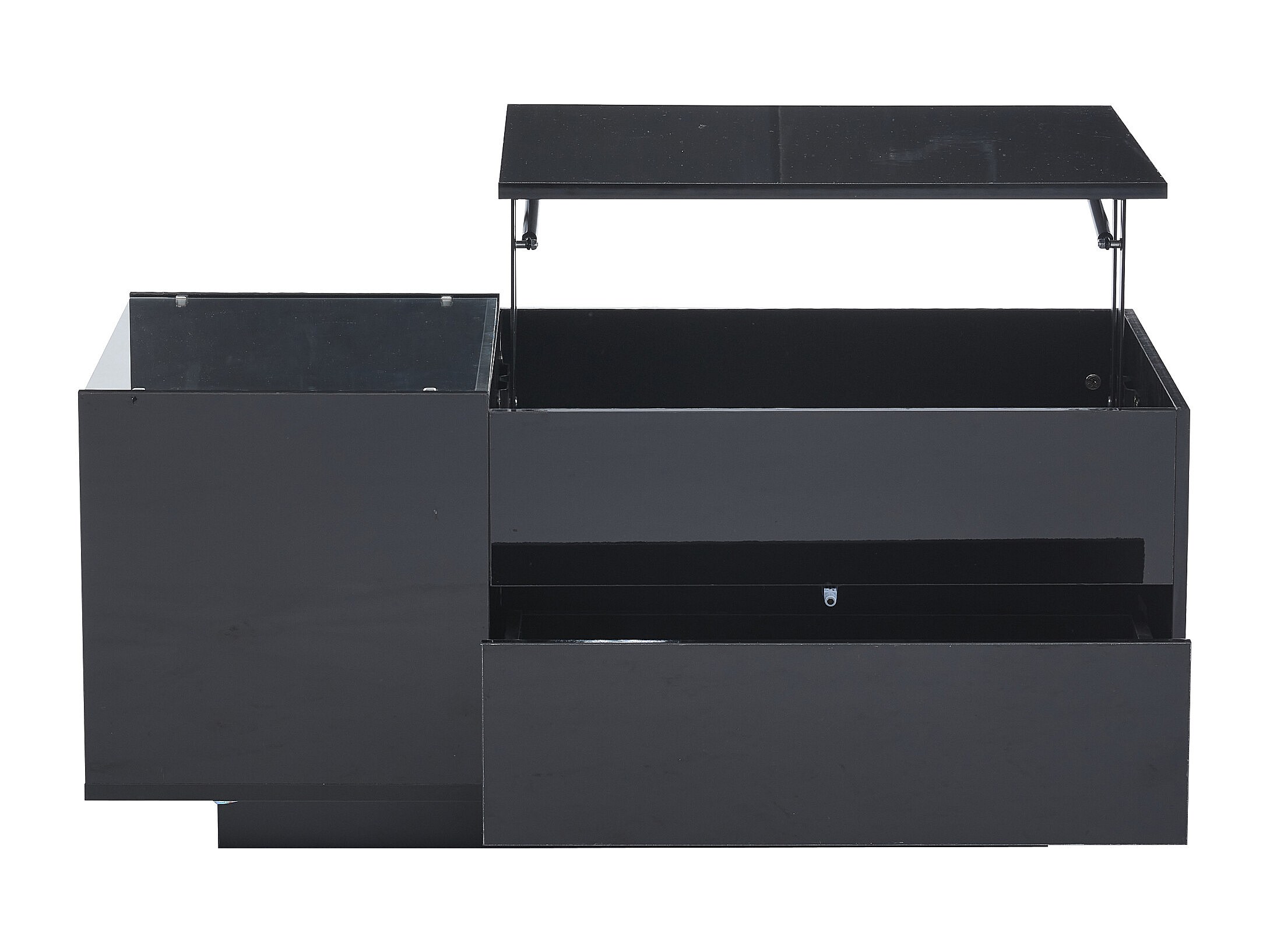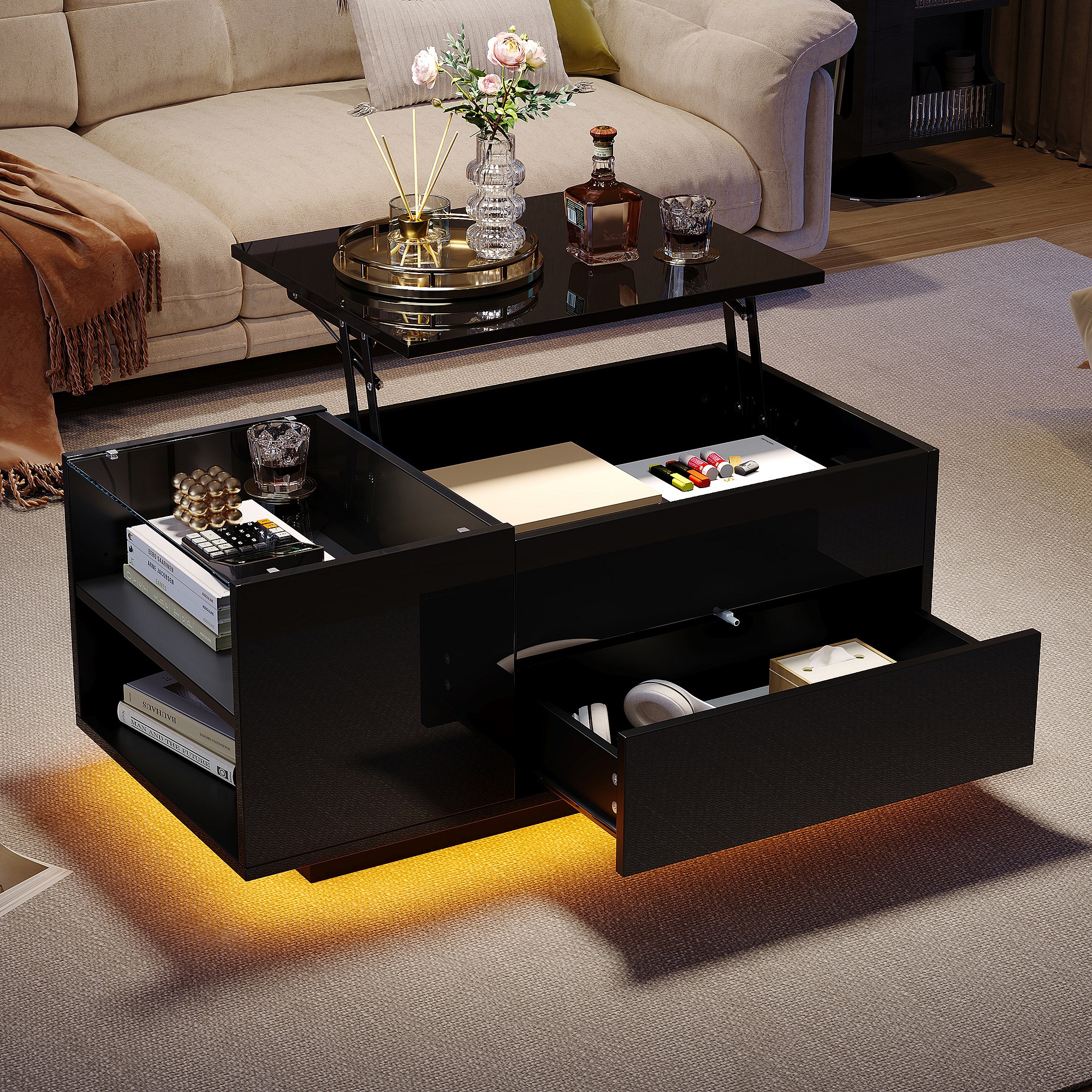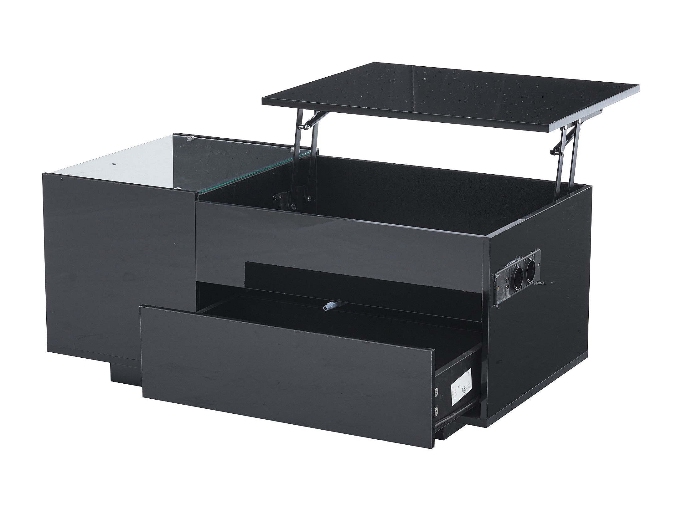 Mesa de centro negra con tablero regulable en altura – Mesa de centro con iluminación LED y 1 cajón – Almacenamiento abierto