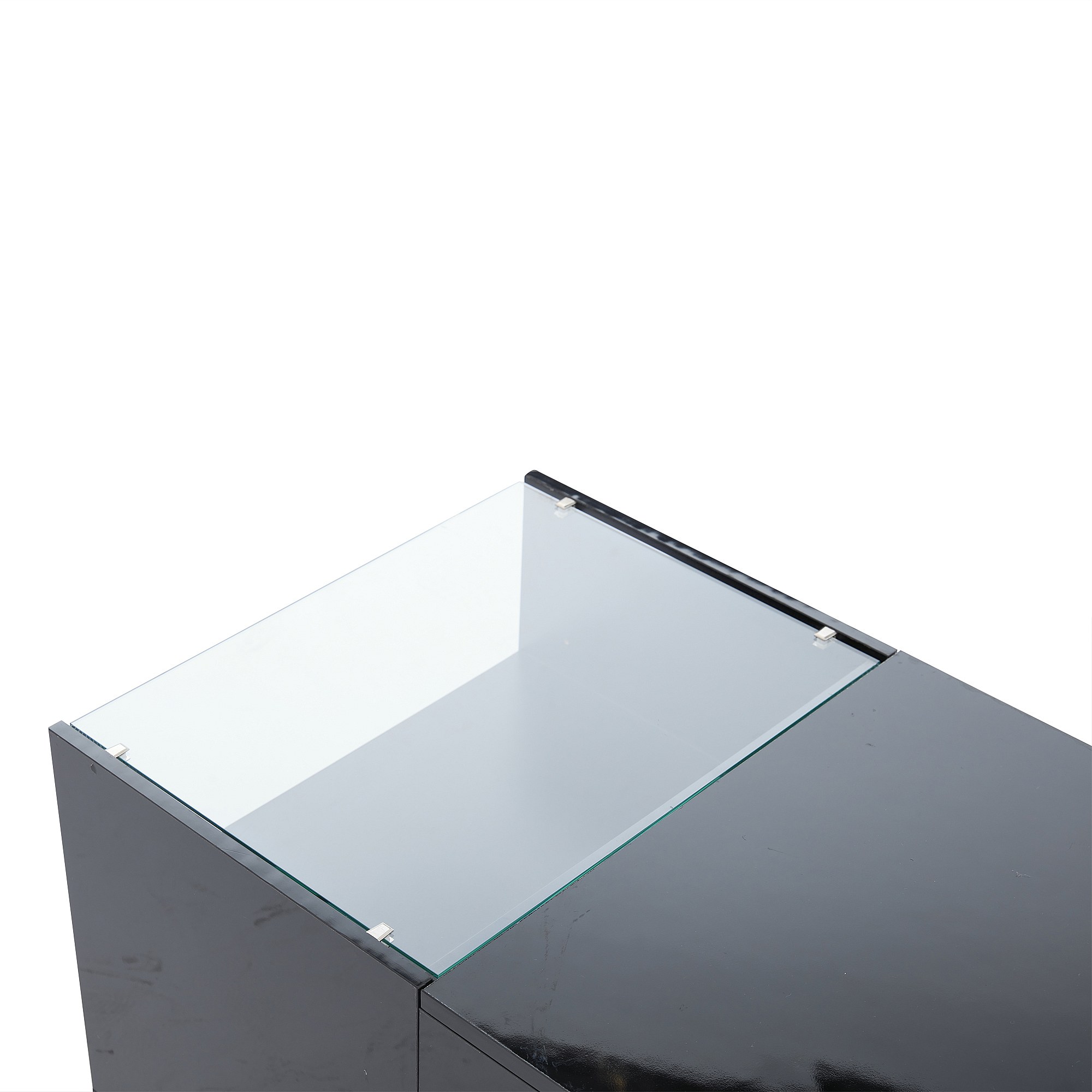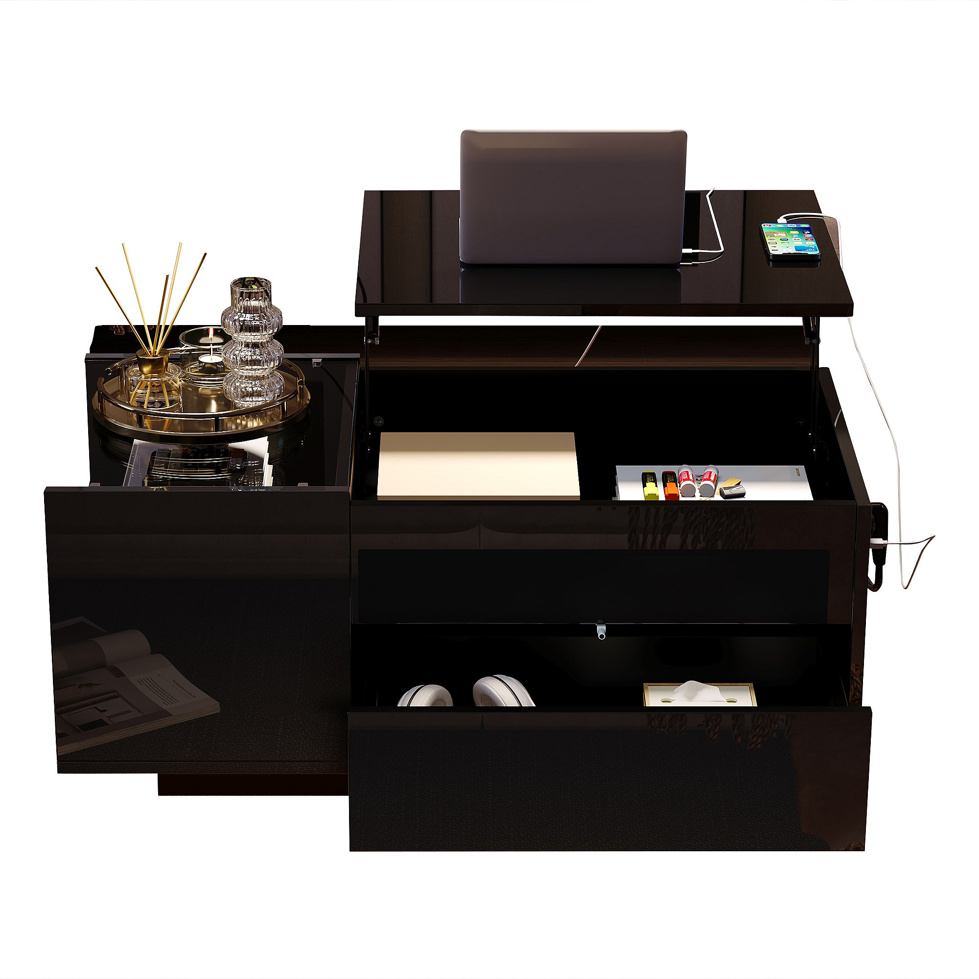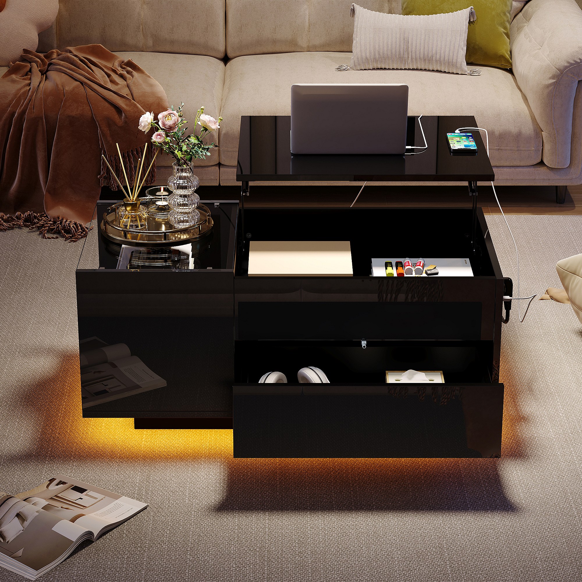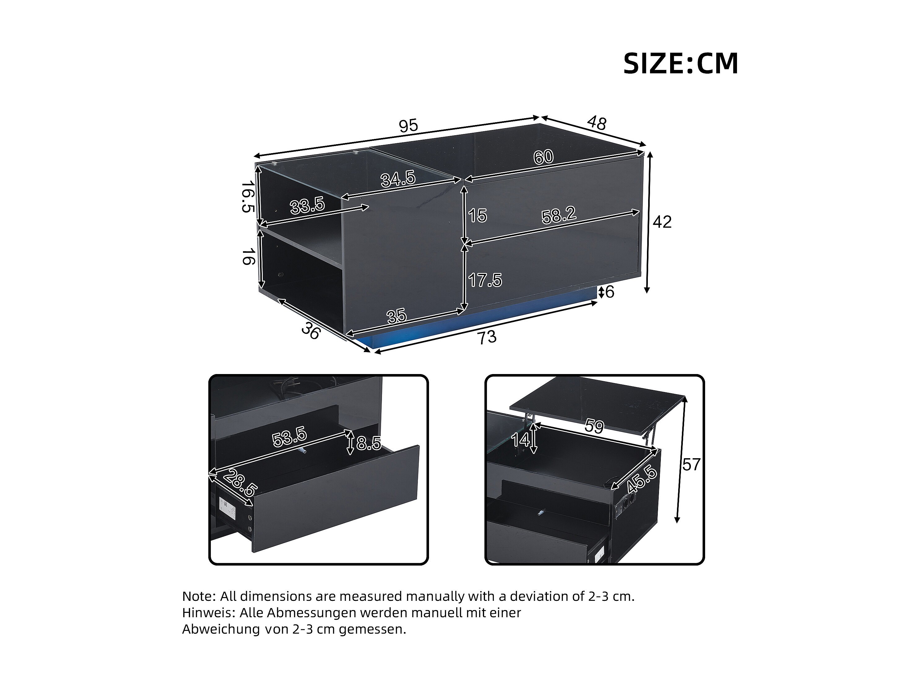 Mesa de centro negra con tablero regulable en altura – Mesa de centro con iluminación LED y 1 cajón – Almacenamiento abierto