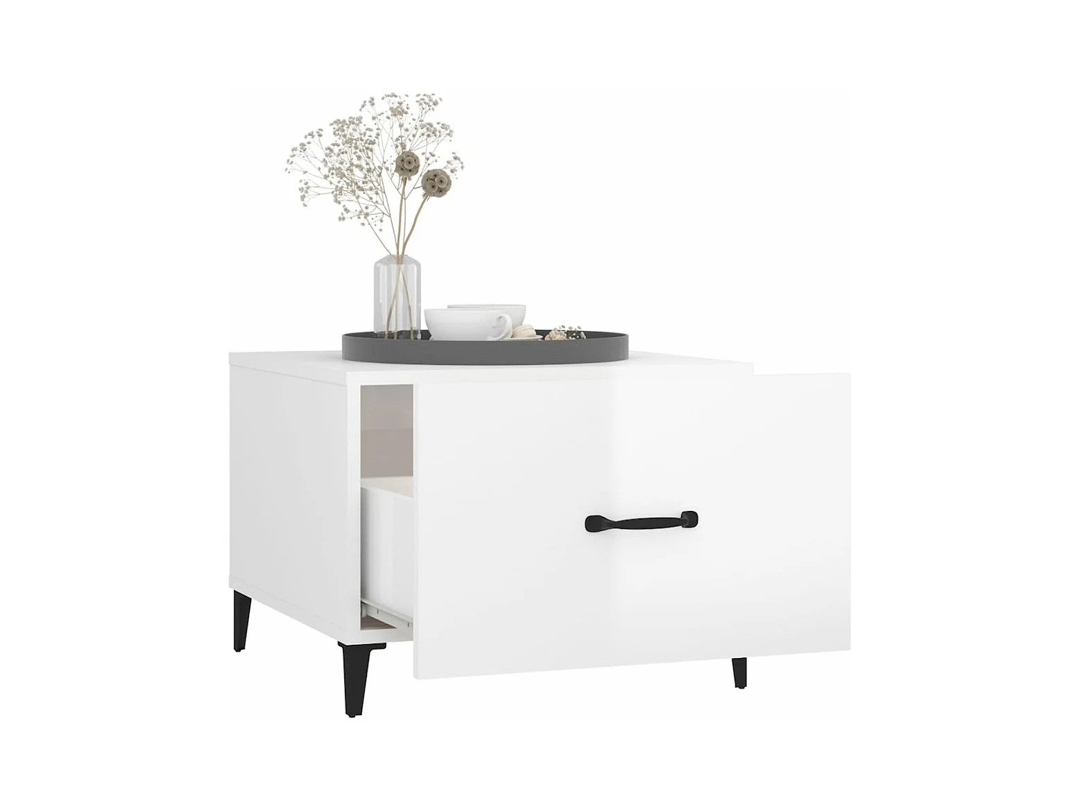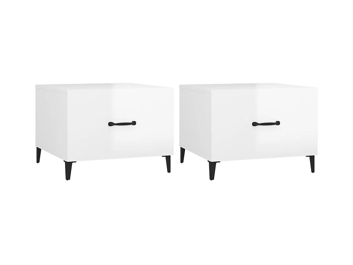 Mesa de centro patas de metal 2 uds blanco brillo 50x50x40 cm