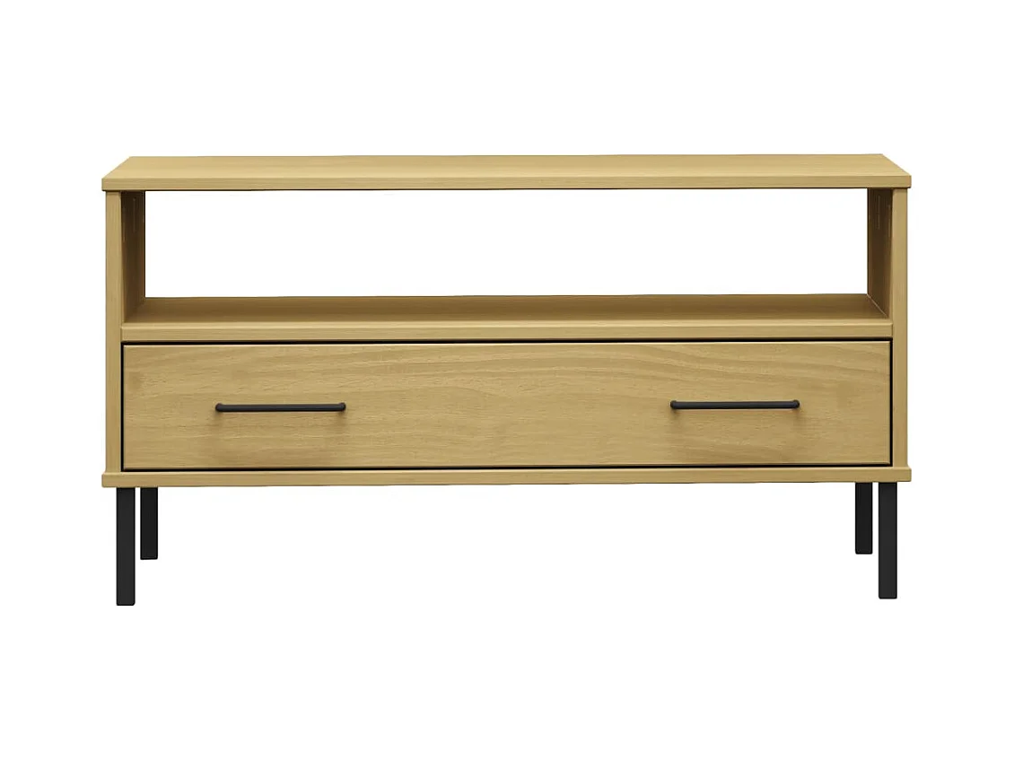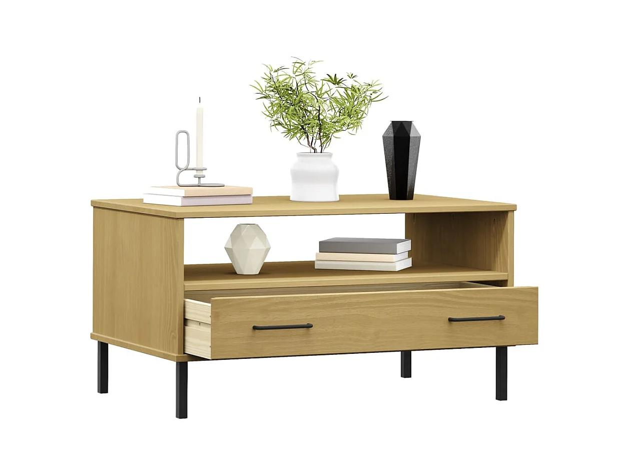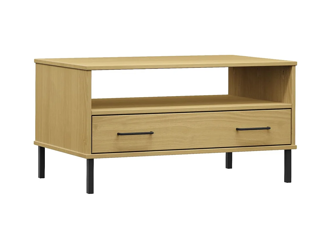 Mesa de centro patas metal OSLO madera maciza marrón 85x50x45cm