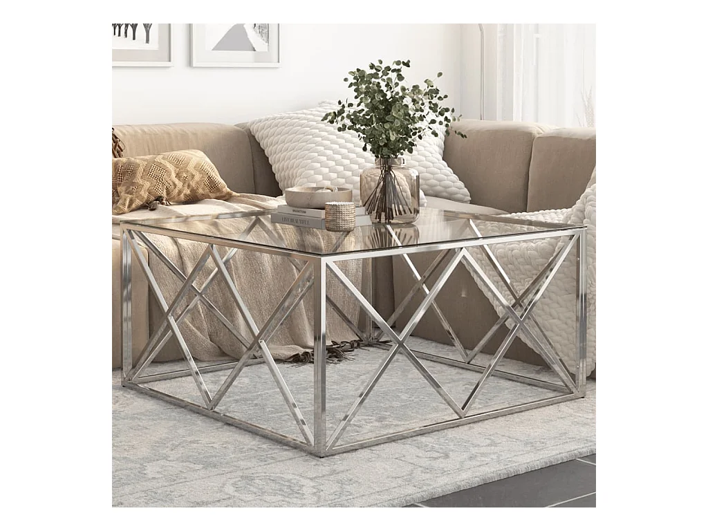 Mesa de centro 80x80x40 cm acero inoxidable y cristal