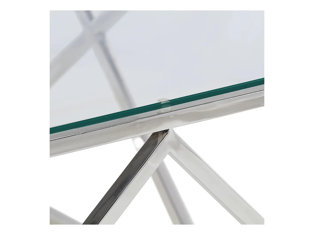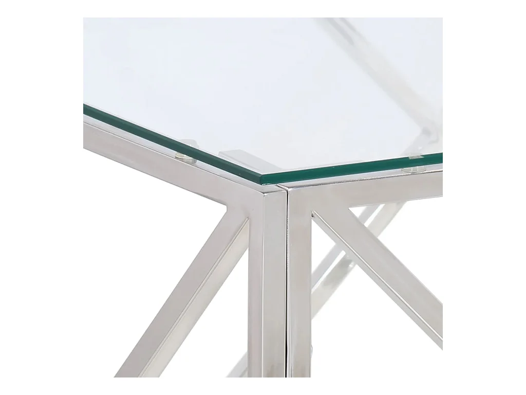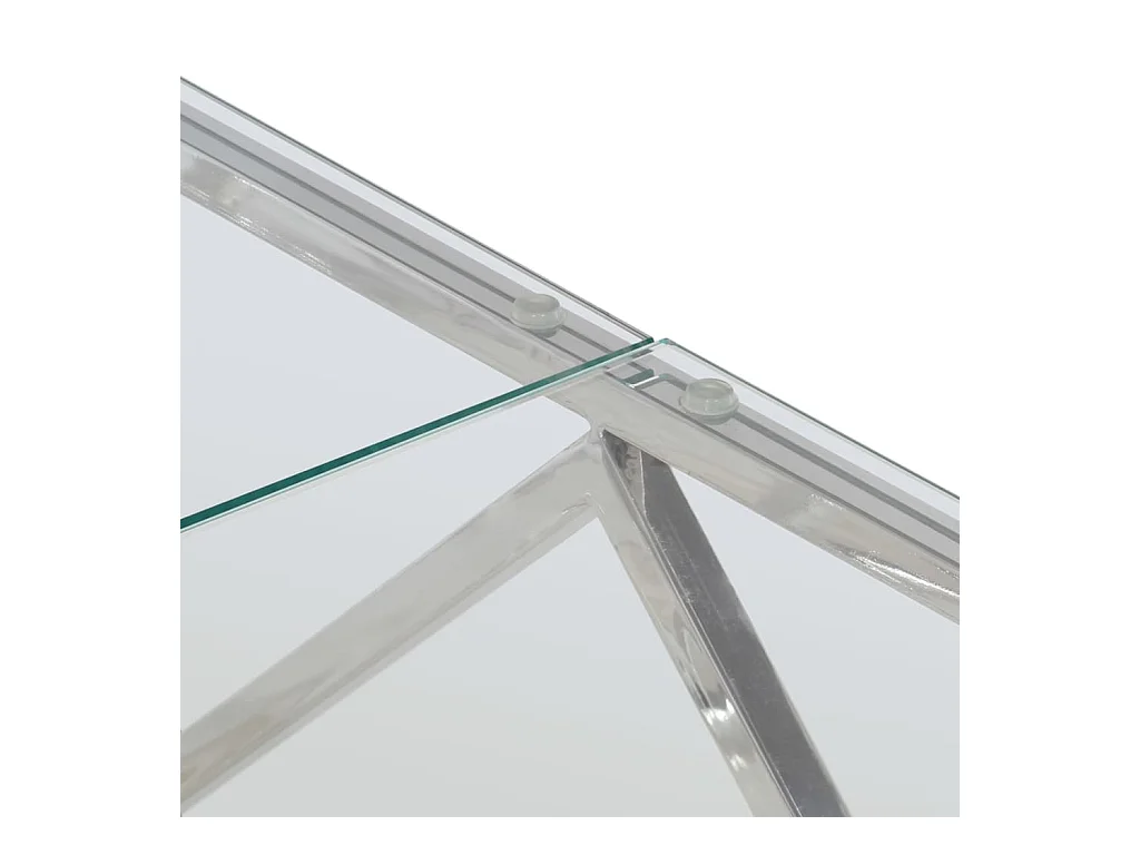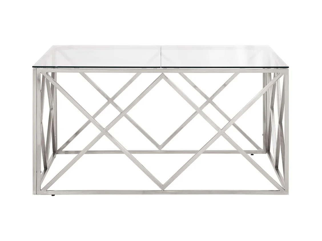 Mesa de centro plateada en acero inoxidable y cristal templado.