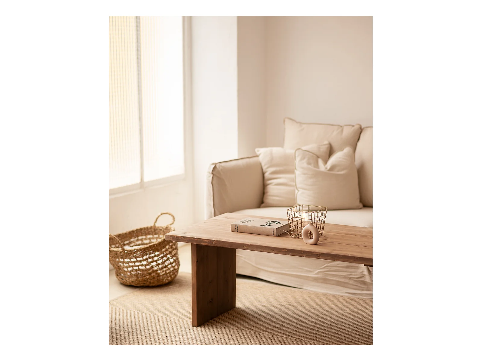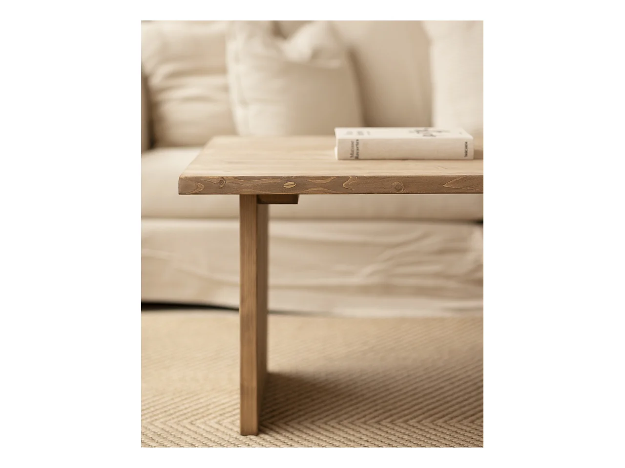 Mesa de centro rectangular de madera de pino Decowood de dos patas en color roble oscuro de 120x60cm - FRIDA - DECOWOOD