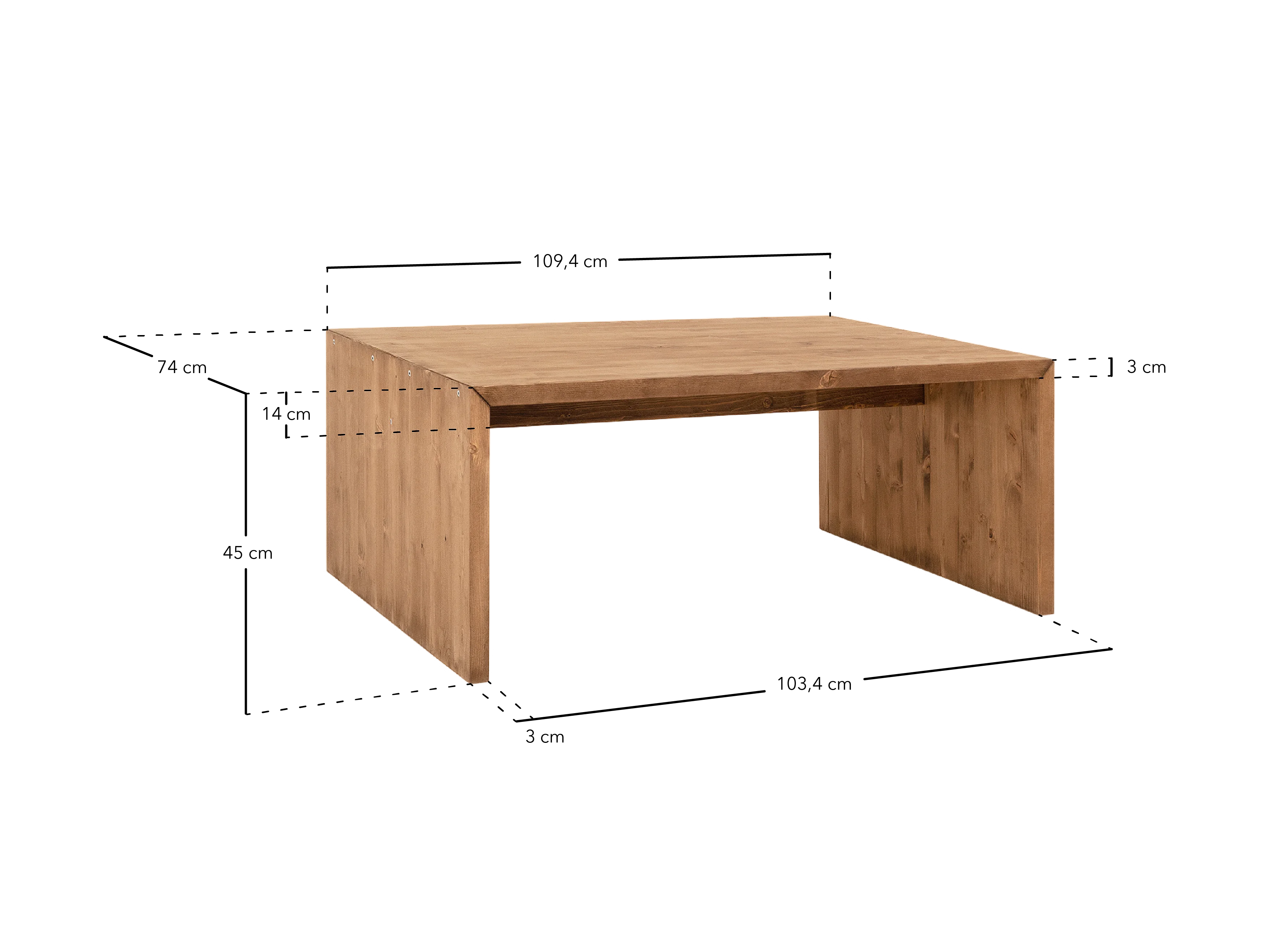Mesa de centro rectangular grande de madera de abeto Decowood en color natural de 109,4x59x74cm - TELVA - DECOWOOD