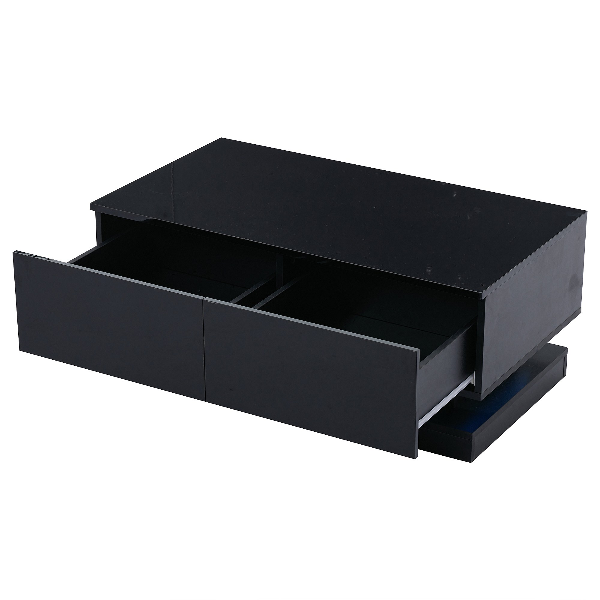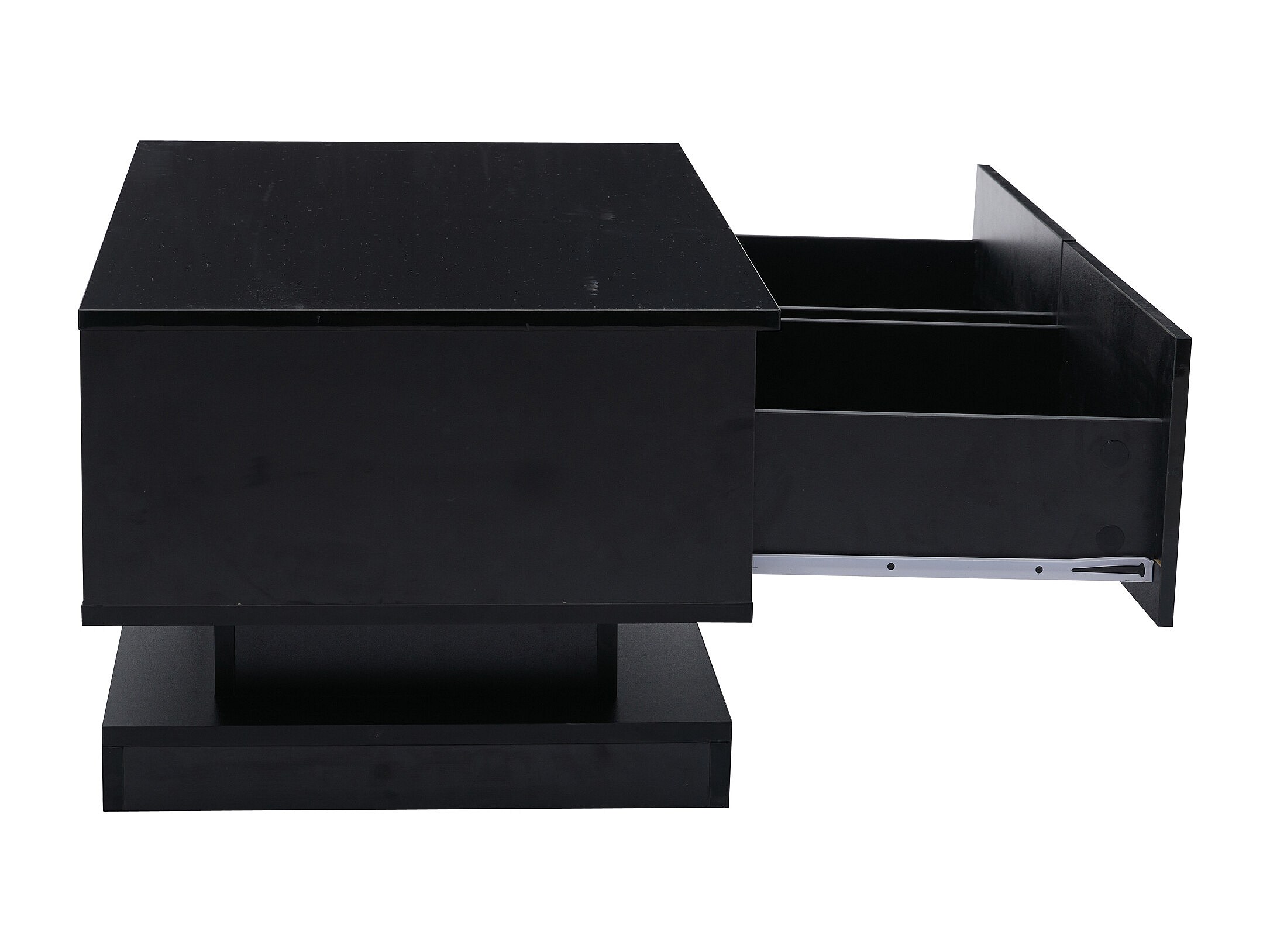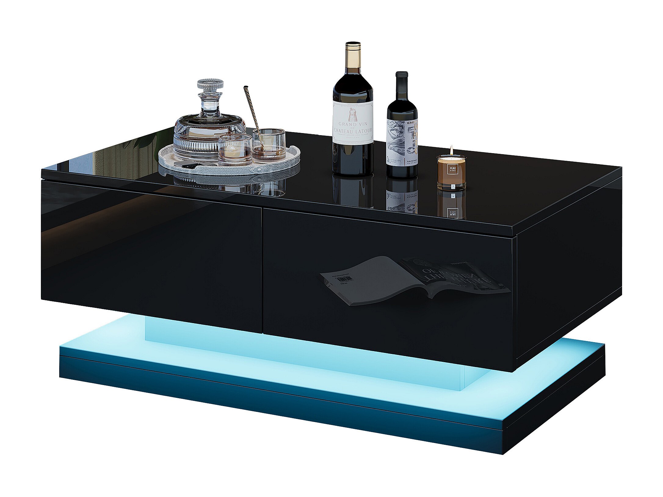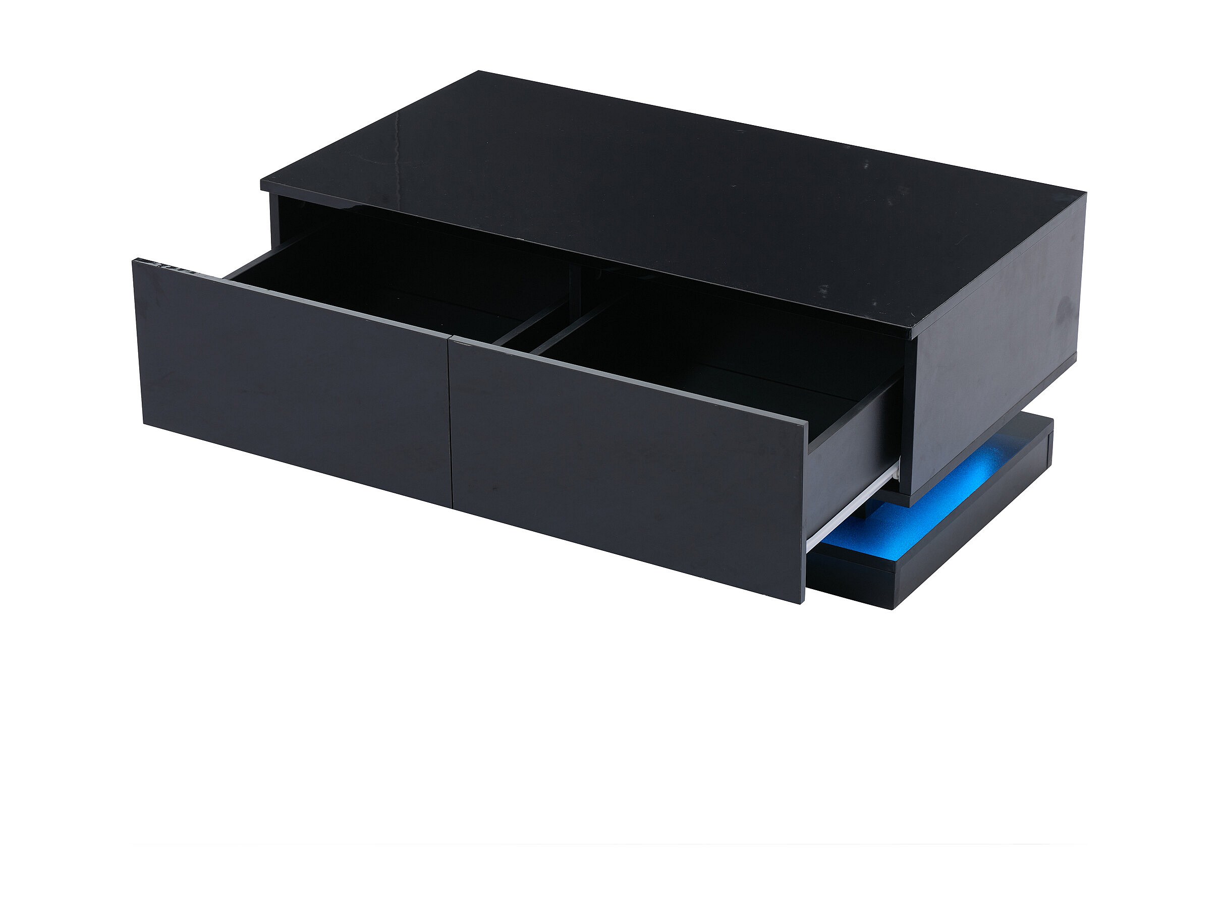 Mesa de centro rectangular negra - Mesa de centro con iluminación LED y 2 cajones - Acabado brillo