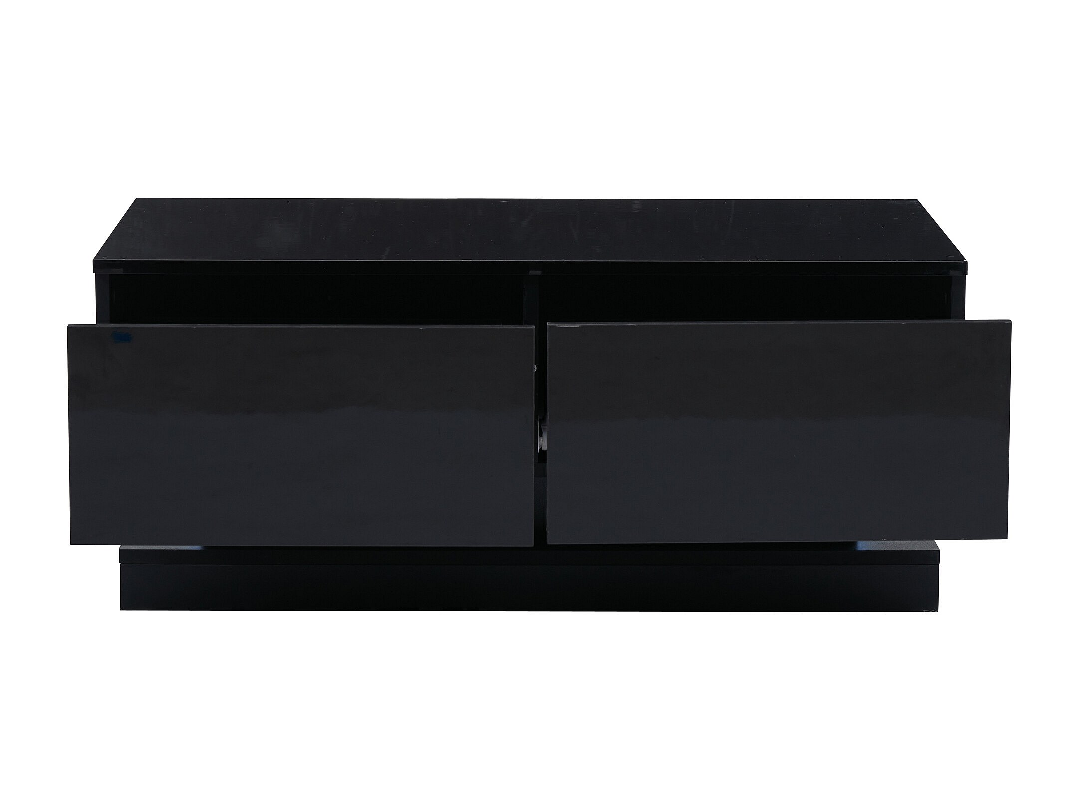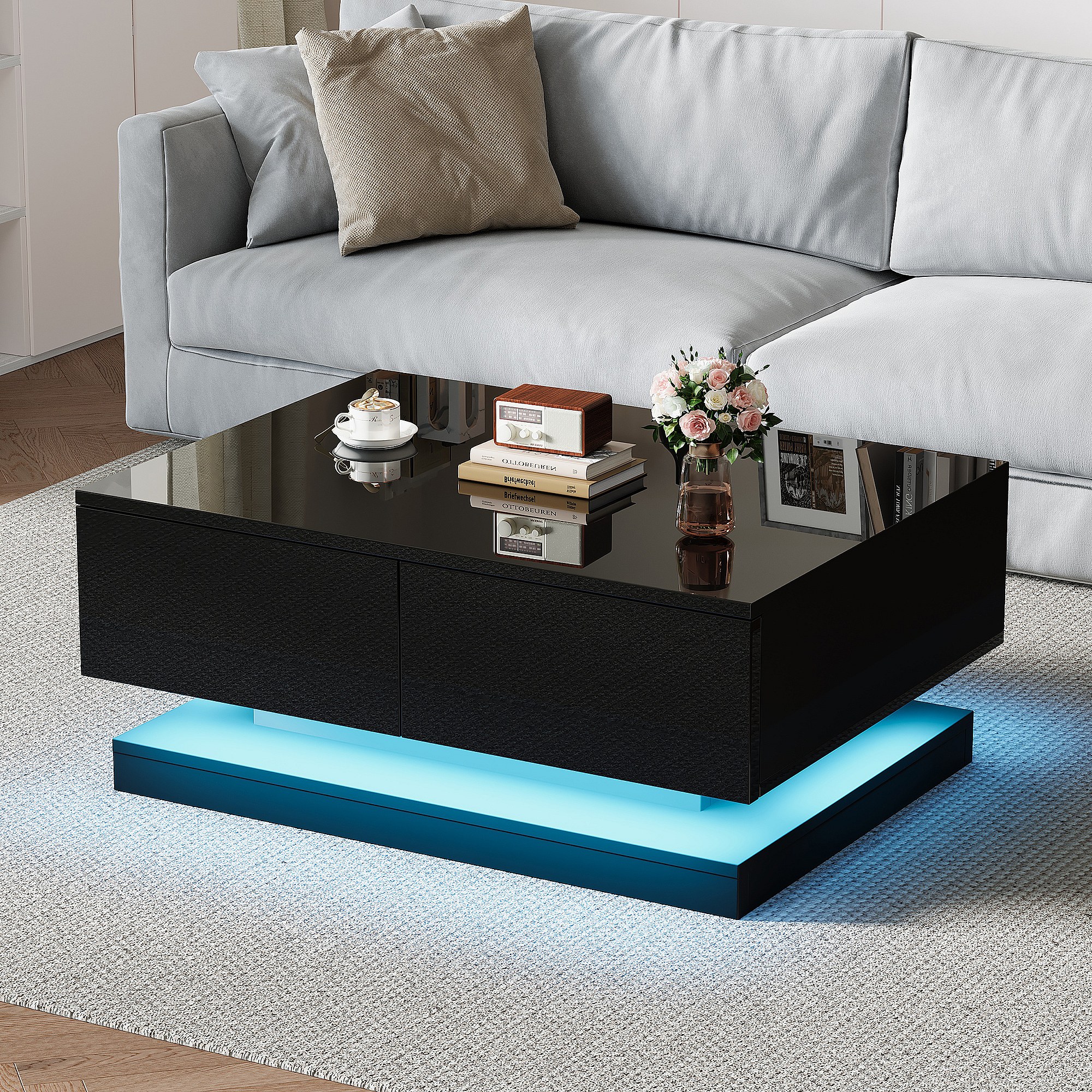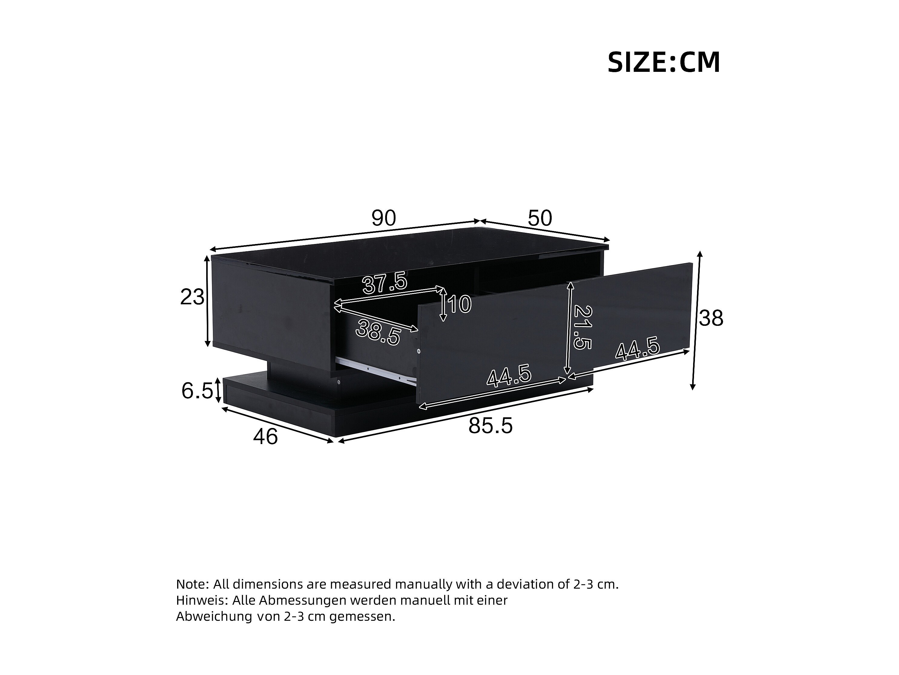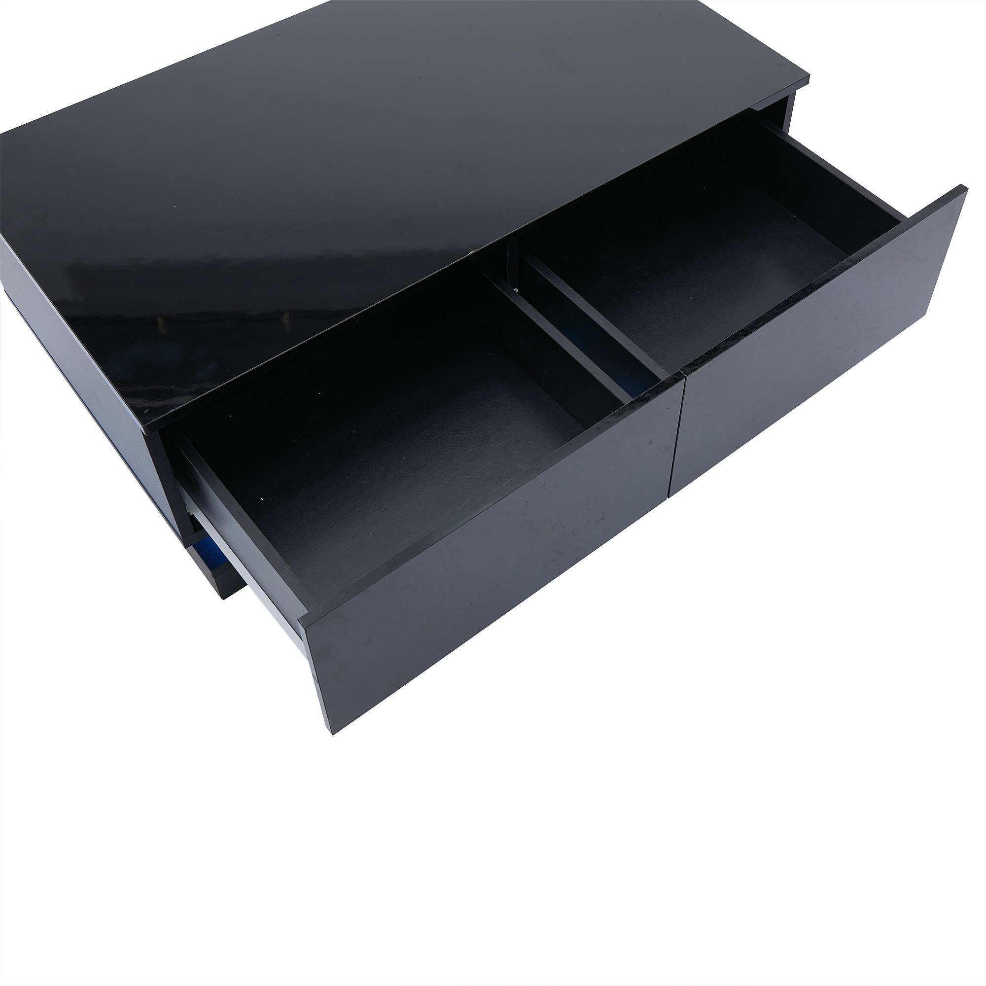 Mesa de centro rectangular negra - Mesa de centro con iluminación LED y 2 cajones - Acabado brillo