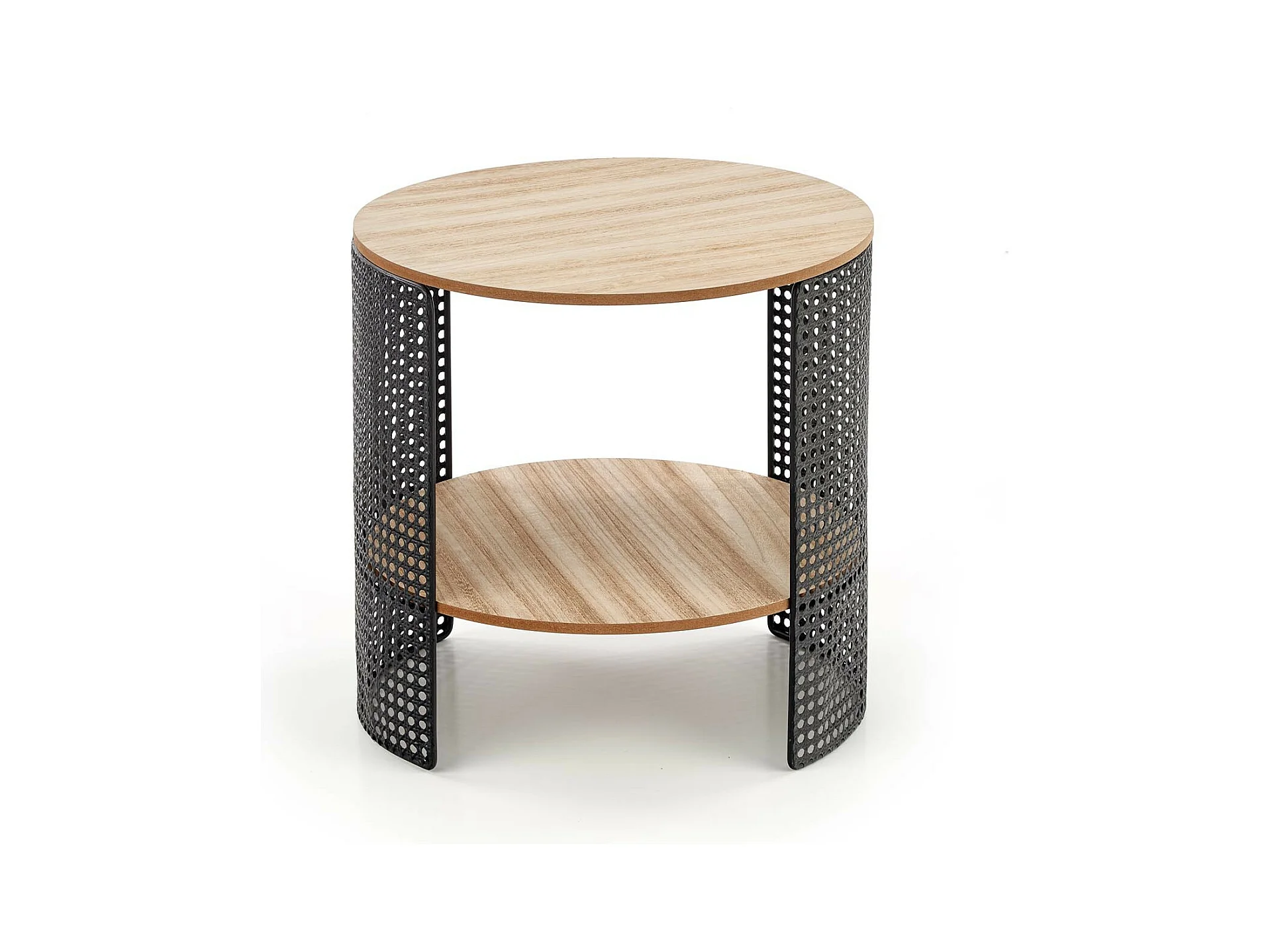 Mesa de centro redonda de 45 cm en roble natural con marco de metal negro TINIA