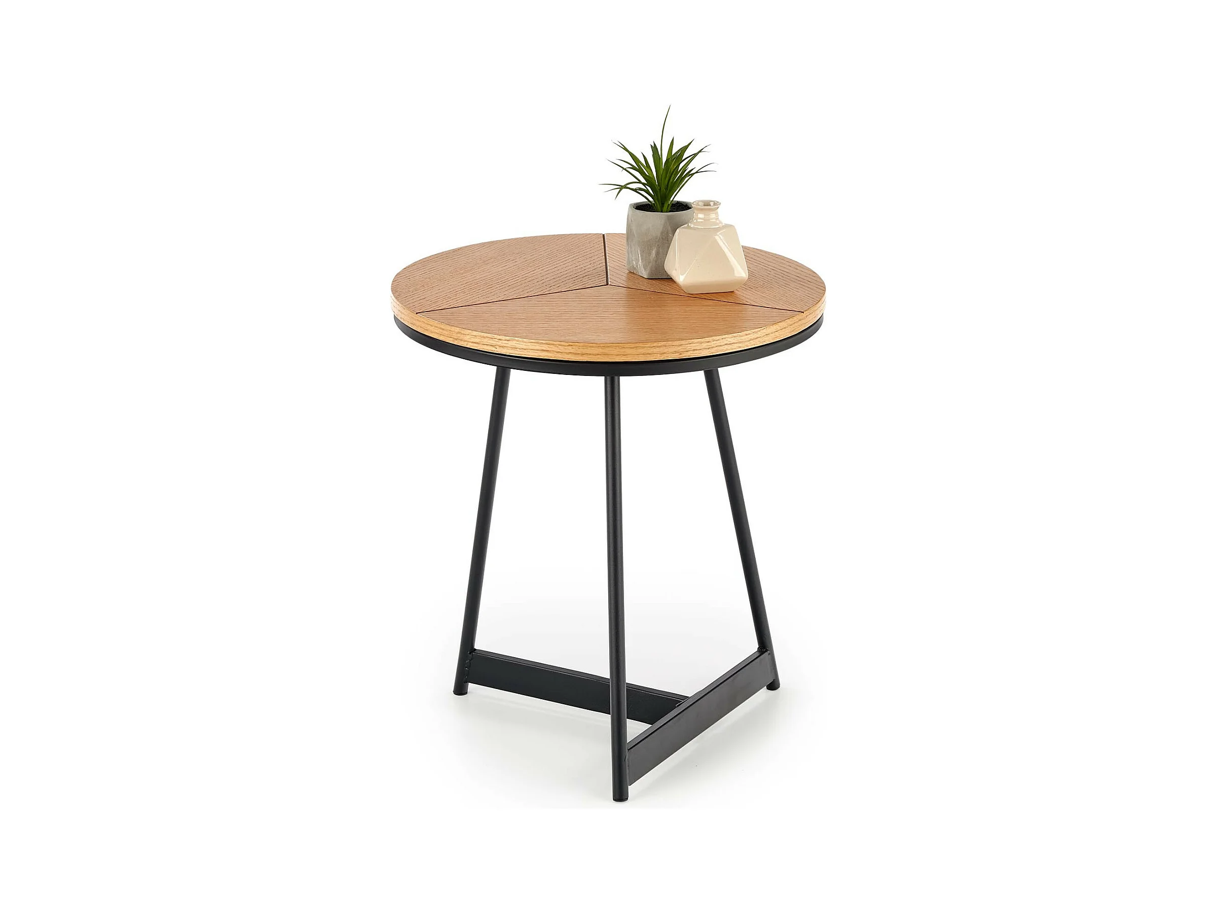 Mesa de centro redonda de 80 cm de diámetro en roble dorado con marco de metal negro BELENOS