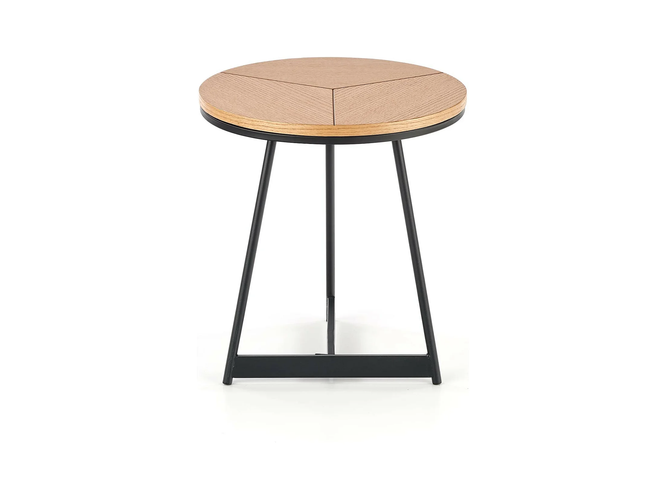 Mesa de centro redonda con tablero de 45 cm de aspecto roble y base de metal negro de diseño PHEBUS-S