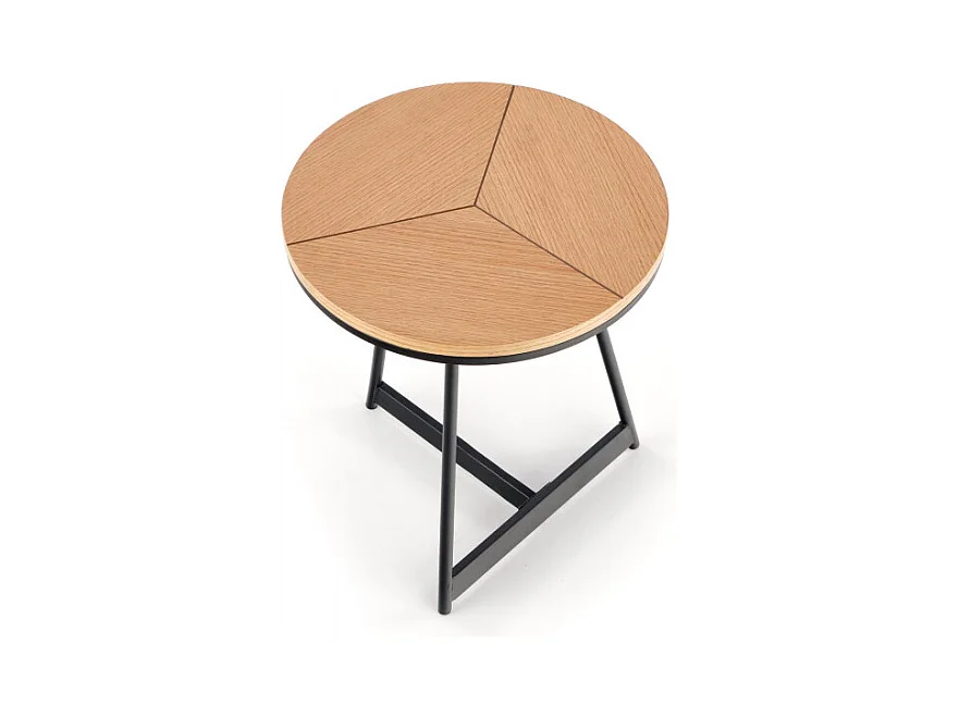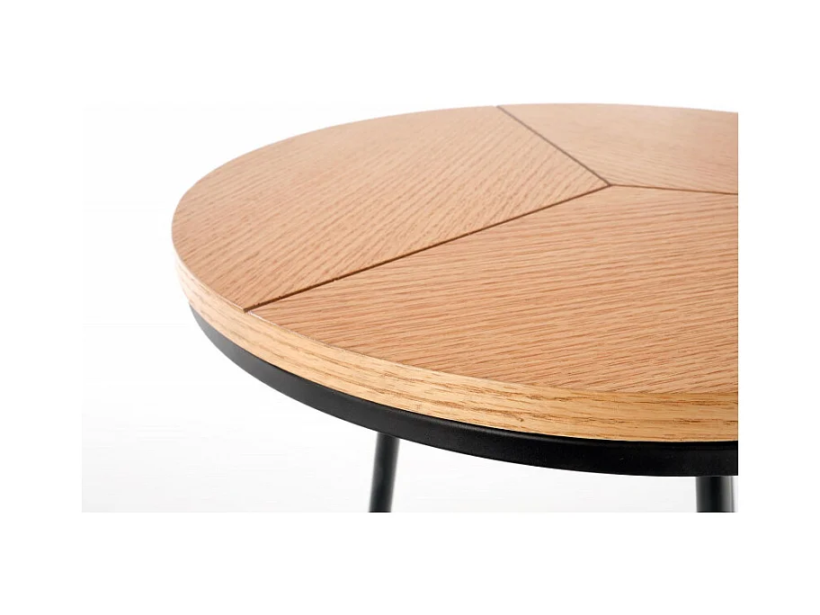 Mesa de centro redonda de 80 cm de diámetro en roble natural con estructura de metal negro TINIA L