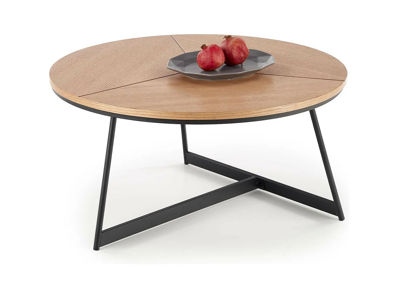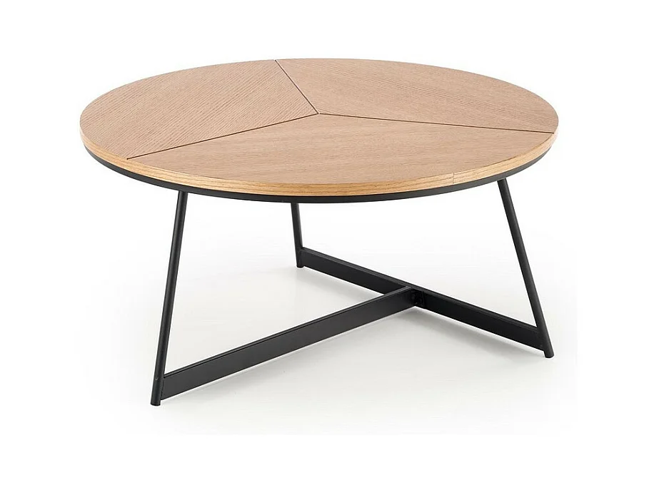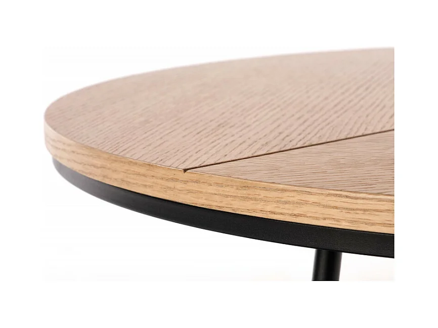 Mesa de centro redonda de 80 cm de diámetro en roble natural con estructura de metal negro TINIA L