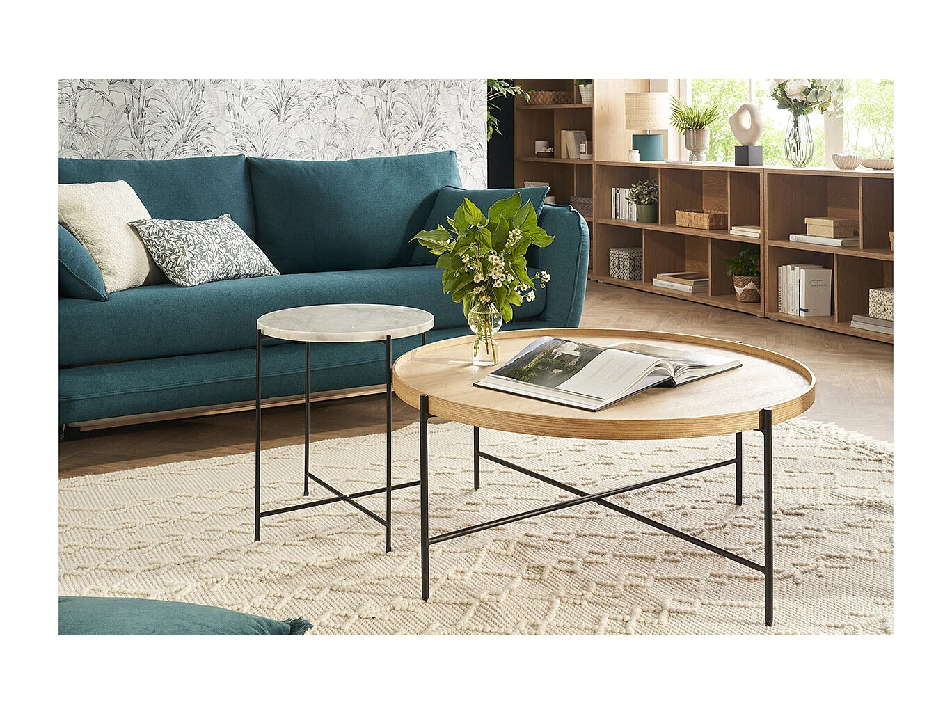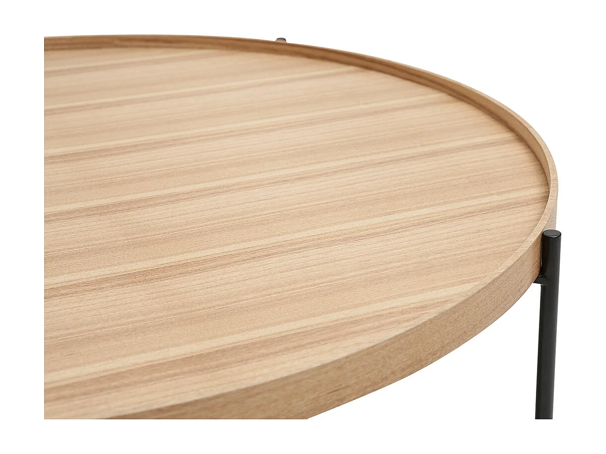 Mesa de centro redonda de madera clara y metal negro 90 cm BASSY
