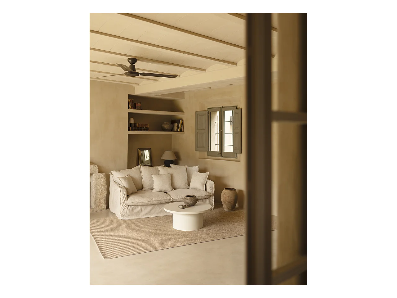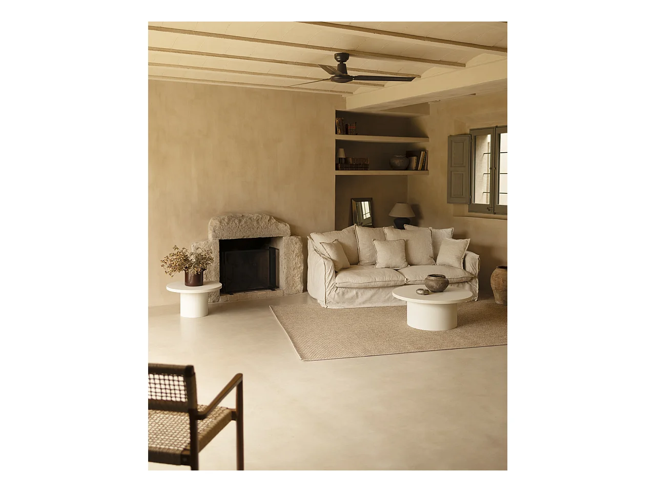 Mesa de centro redonda de microcemento en tono blanco roto DECOWOOD de Ø80x30cm - LUCÍA - DECOWOOD