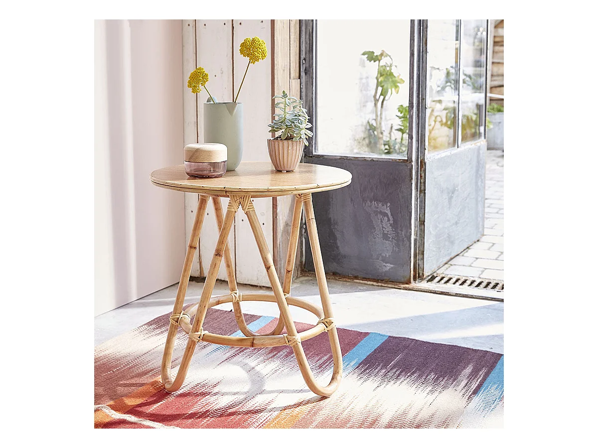 Mesa de centro redonda de madera de abeto maciza Decowood en color natural de Ø80cm - BLOOM - DECOWOOD
