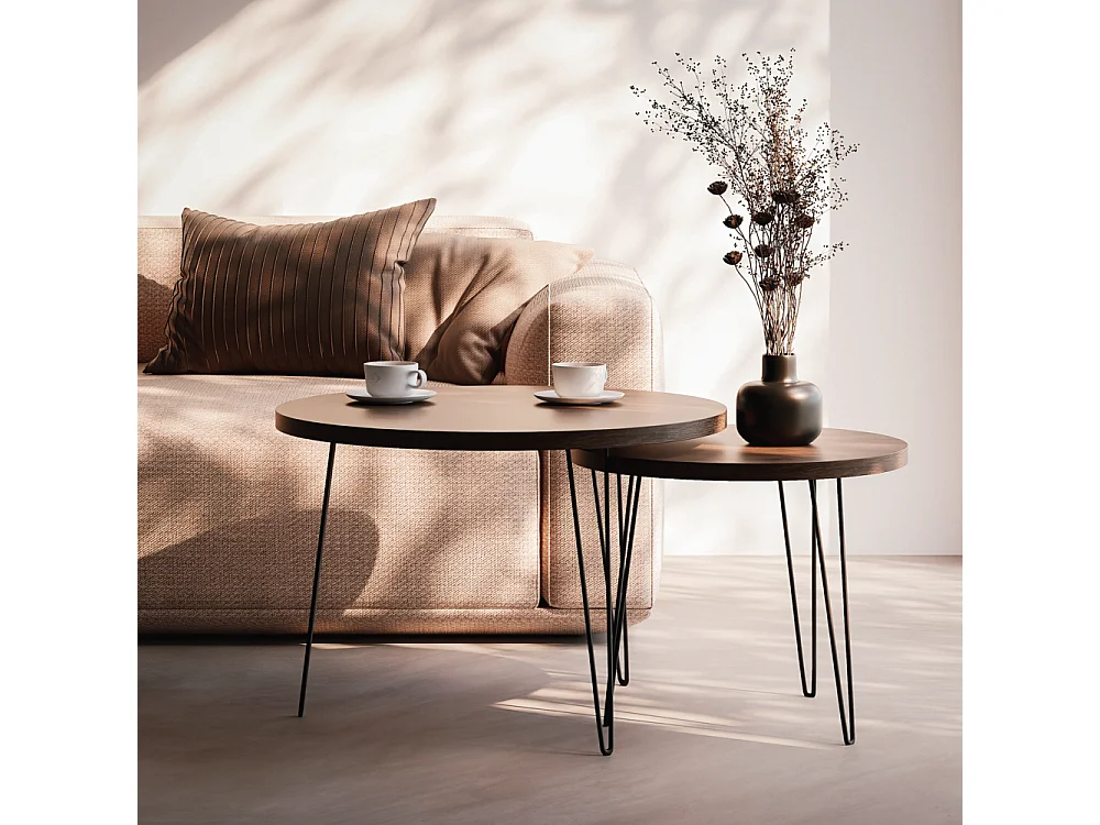 Mesa de centro redonda LAPP, juego Ø50 + Ø68 cm, roble chocolate