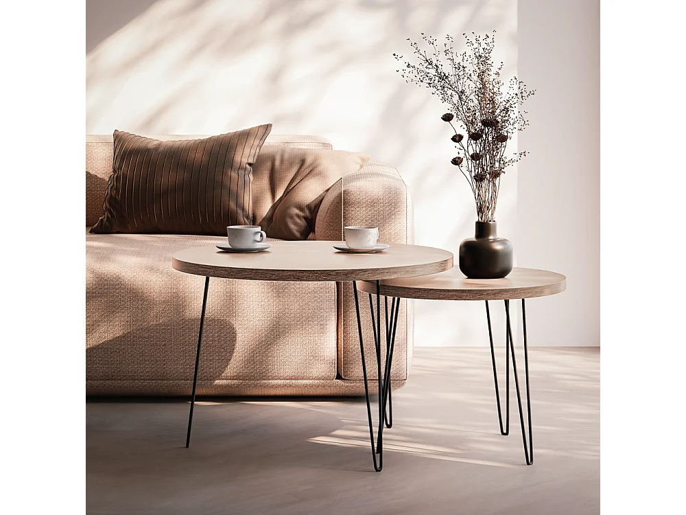 Mesa de centro redonda LAPP, juego Ø50 + Ø68 cm, roble Sonoma