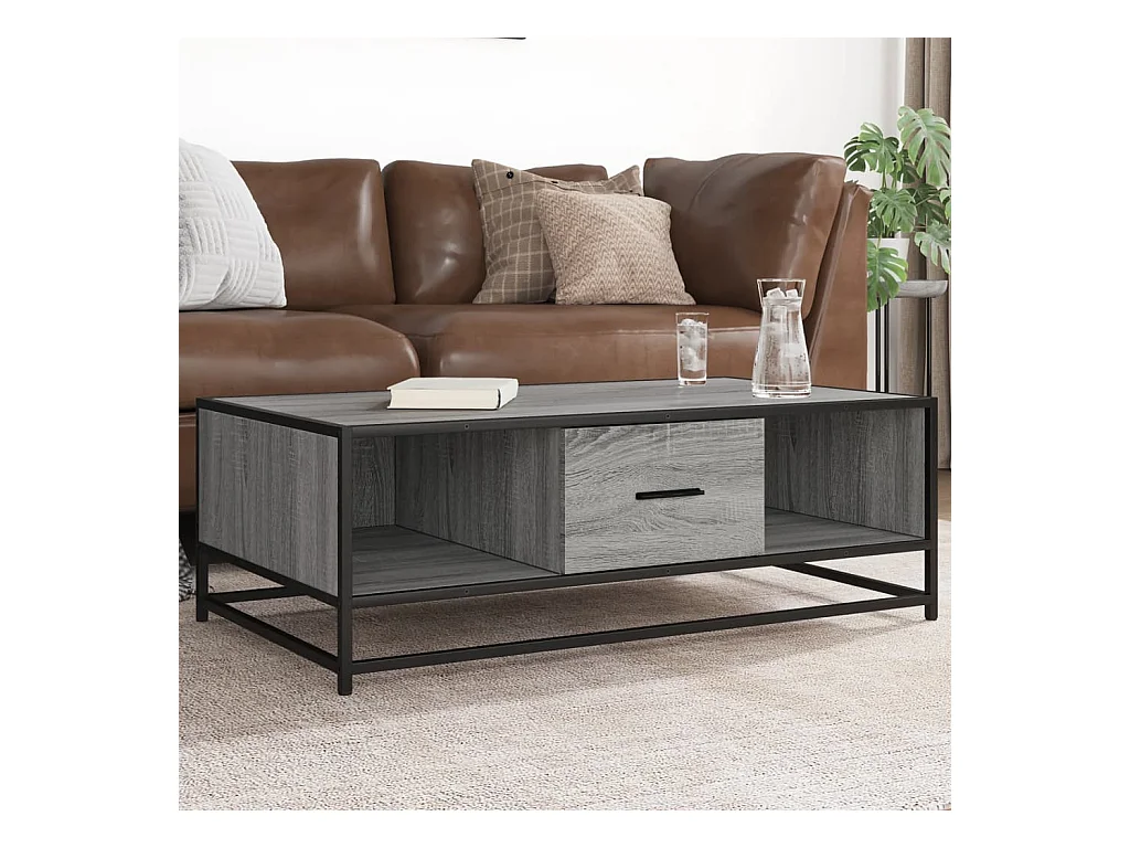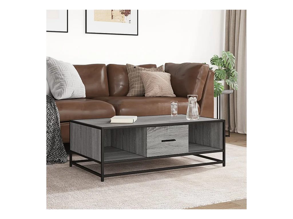 Mesa de centro madera ingeniería metal gris Sonoma 100x57x35 cm