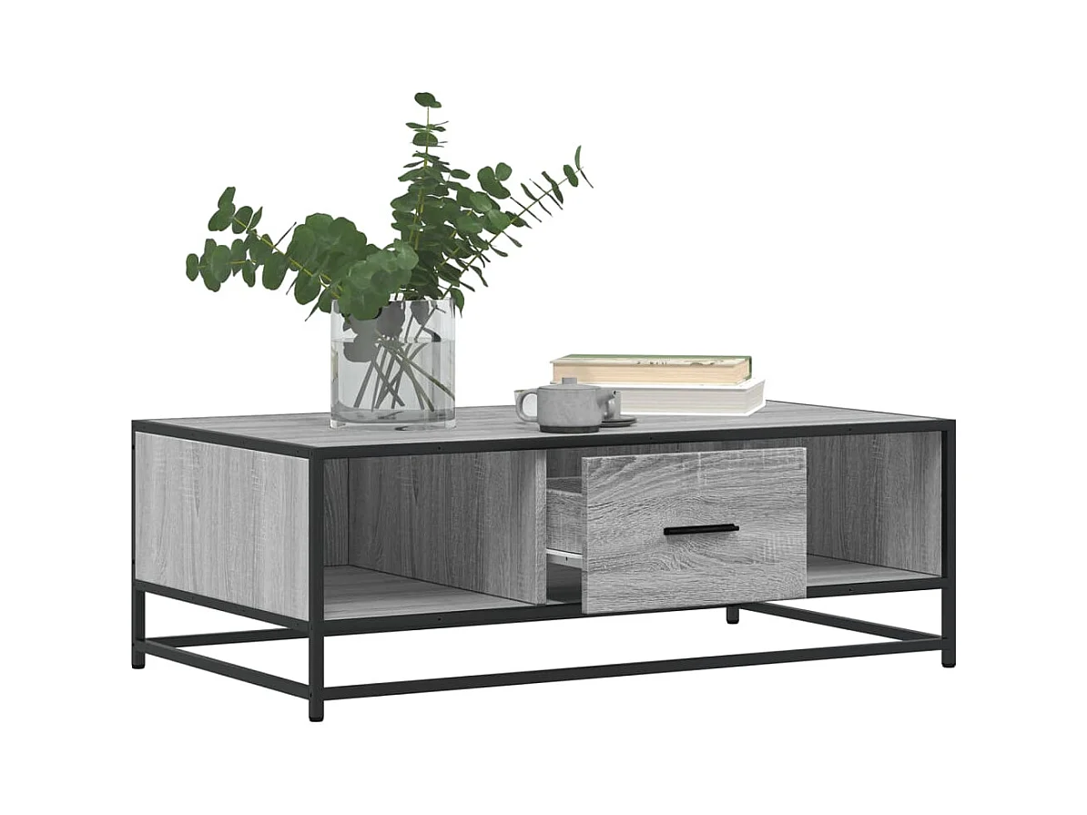 Mesa de centro Sonoma gris 100x57x35 cm madera contrachapada y metal