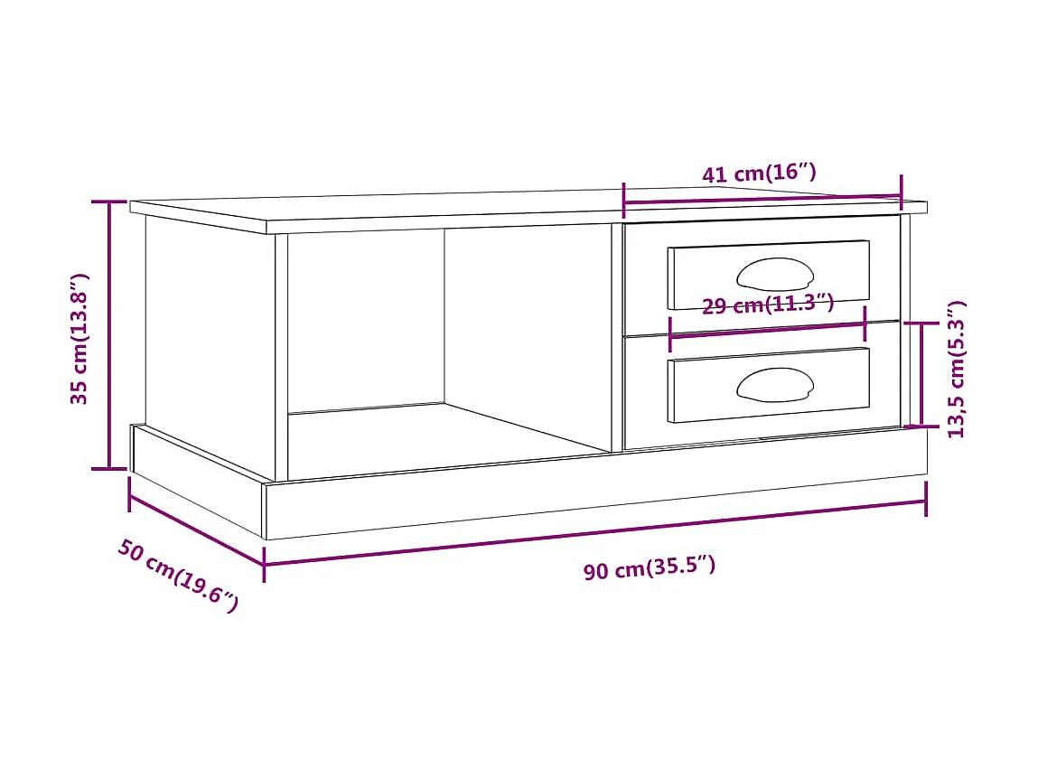 Mesa de centro Sonoma gris 90x50x35 cm Madera contrachapada