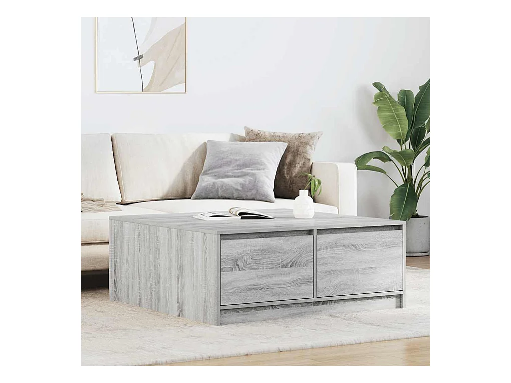 Mesa de centro Sonoma gris con cajones 100x100x40 cm
