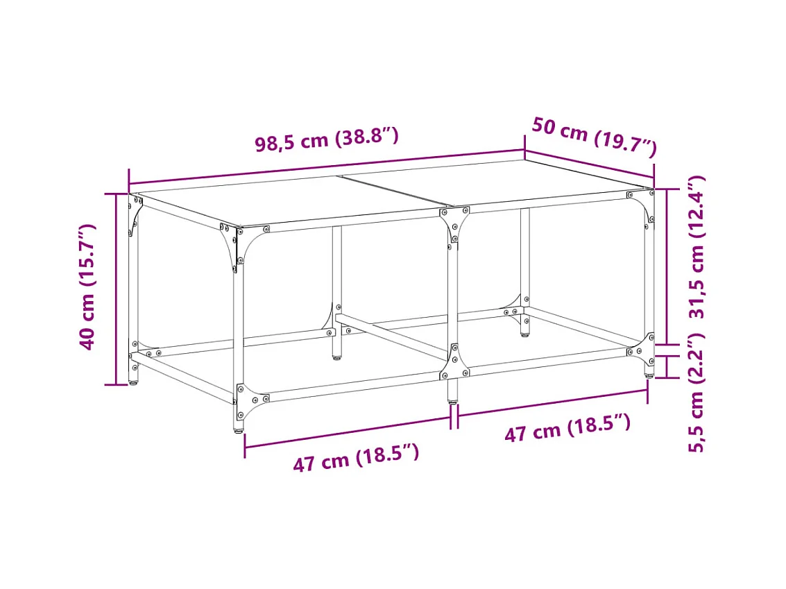 Mesa de centro superficie de vidrio acero 98,5x50x40 cm
