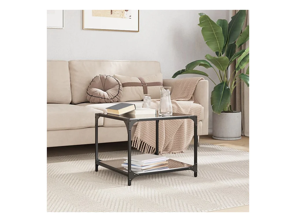 Mesa de centro superficie vidrio negro y acero 50x50x40 cm
