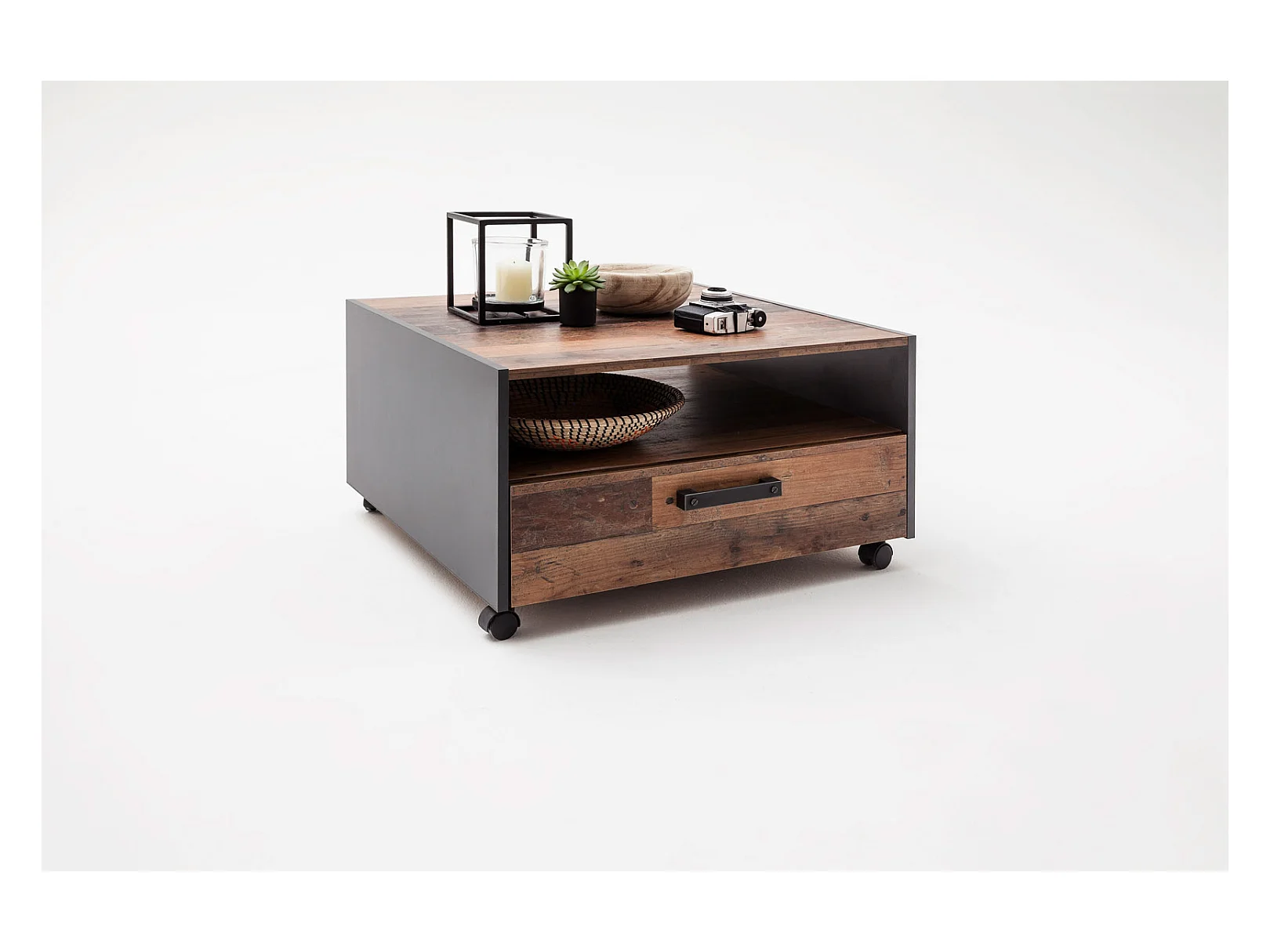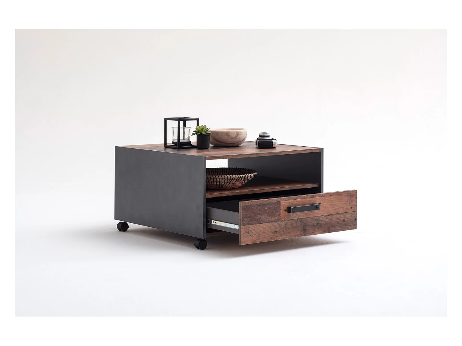 Mesa de centro universal 1 cajón, 1 compartimento abierto Decoración madera vieja, decoración roble.