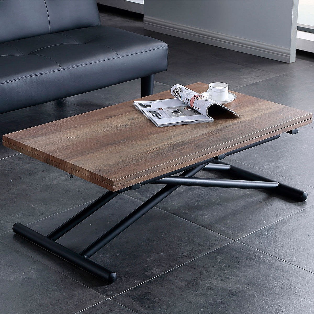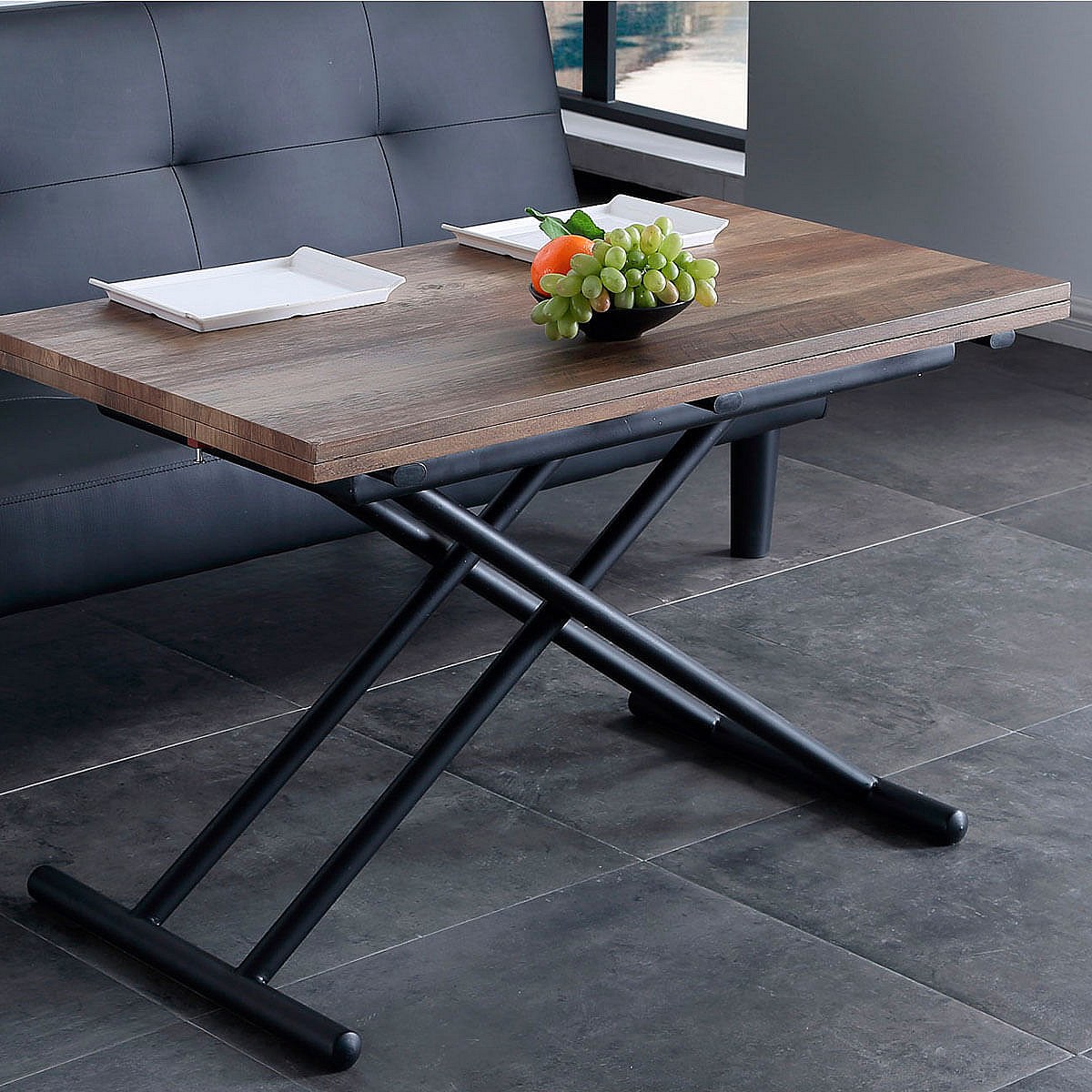 Mesa de centro Up & Down elevable y extensible 4 posiciones nogal/negro 49-76x100x50 cm Adec