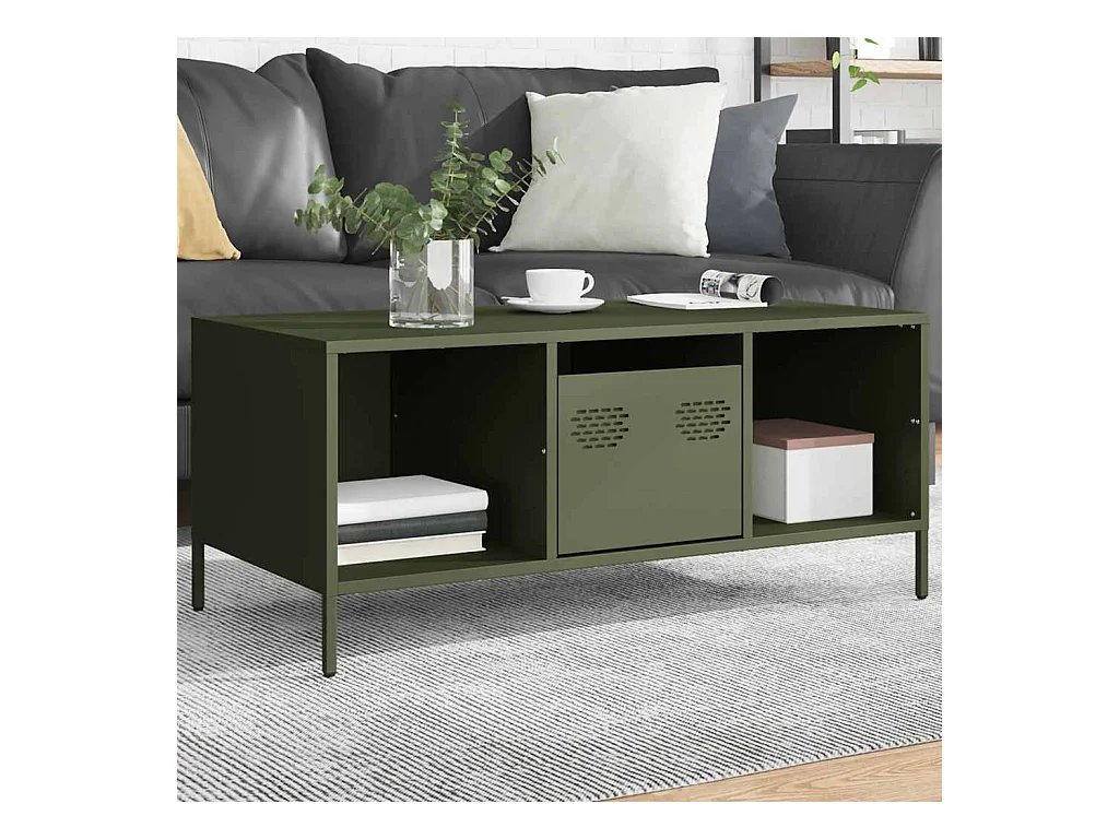 Mesa de centro verde oliva 101,5x50x43,5 cm acero laminado en frío
