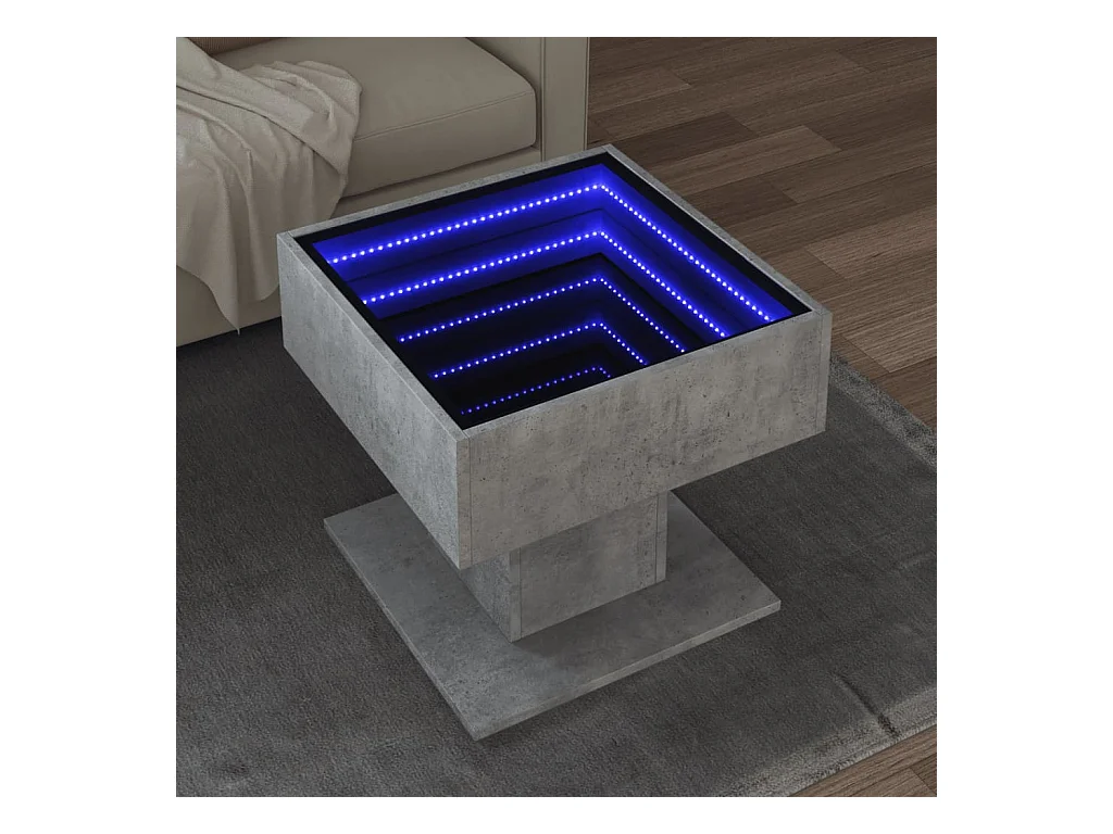 Mesa de centro y LED madera ingeniería gris hormigón 50x50x45cm