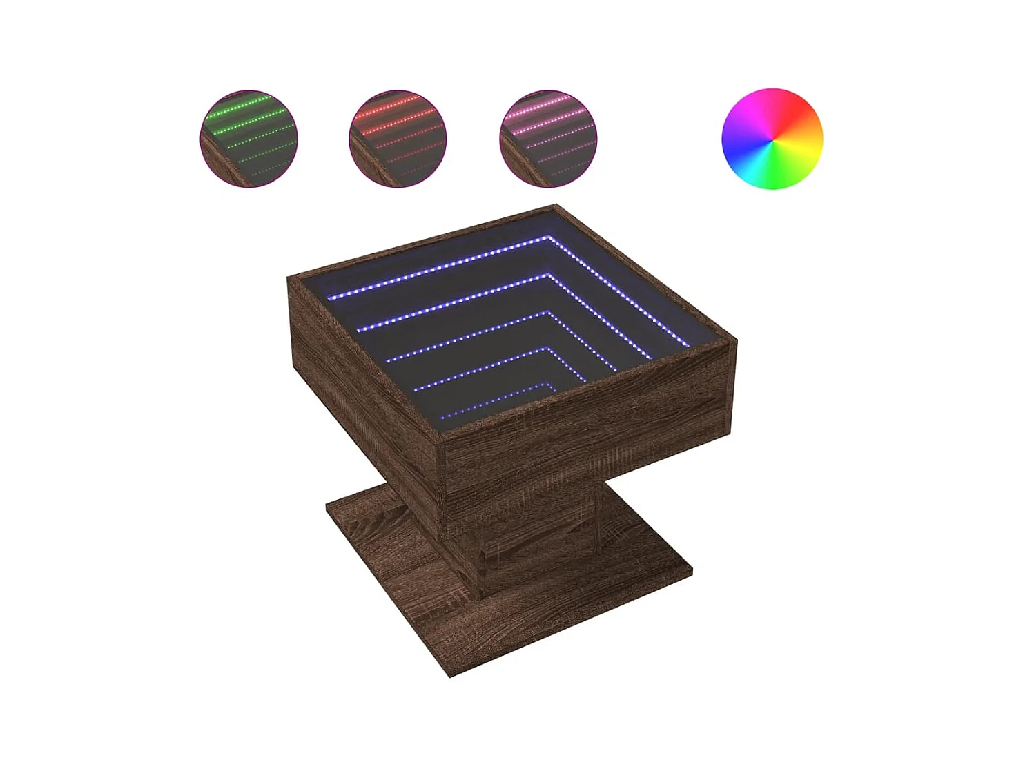 Mesa de centro y LED madera ingeniería marrón roble 50x50x45 cm