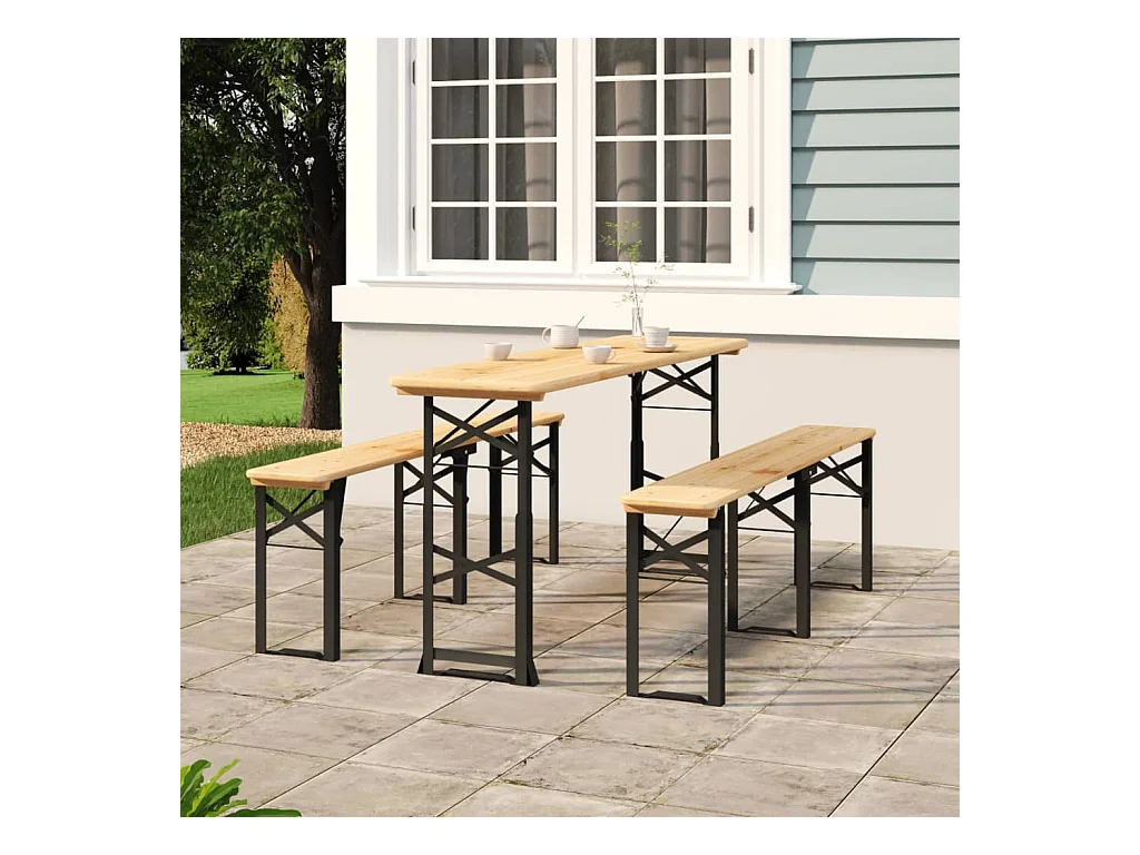 Mesa de cerveza plegable 170x50x75/105 cm madera maciza de abeto