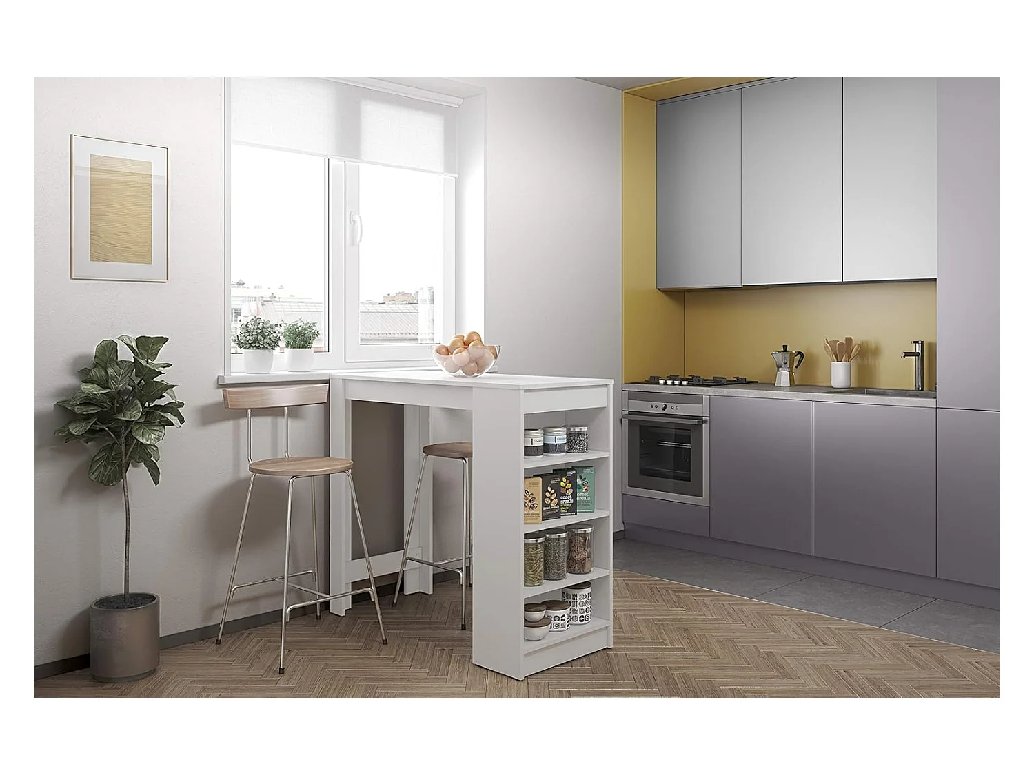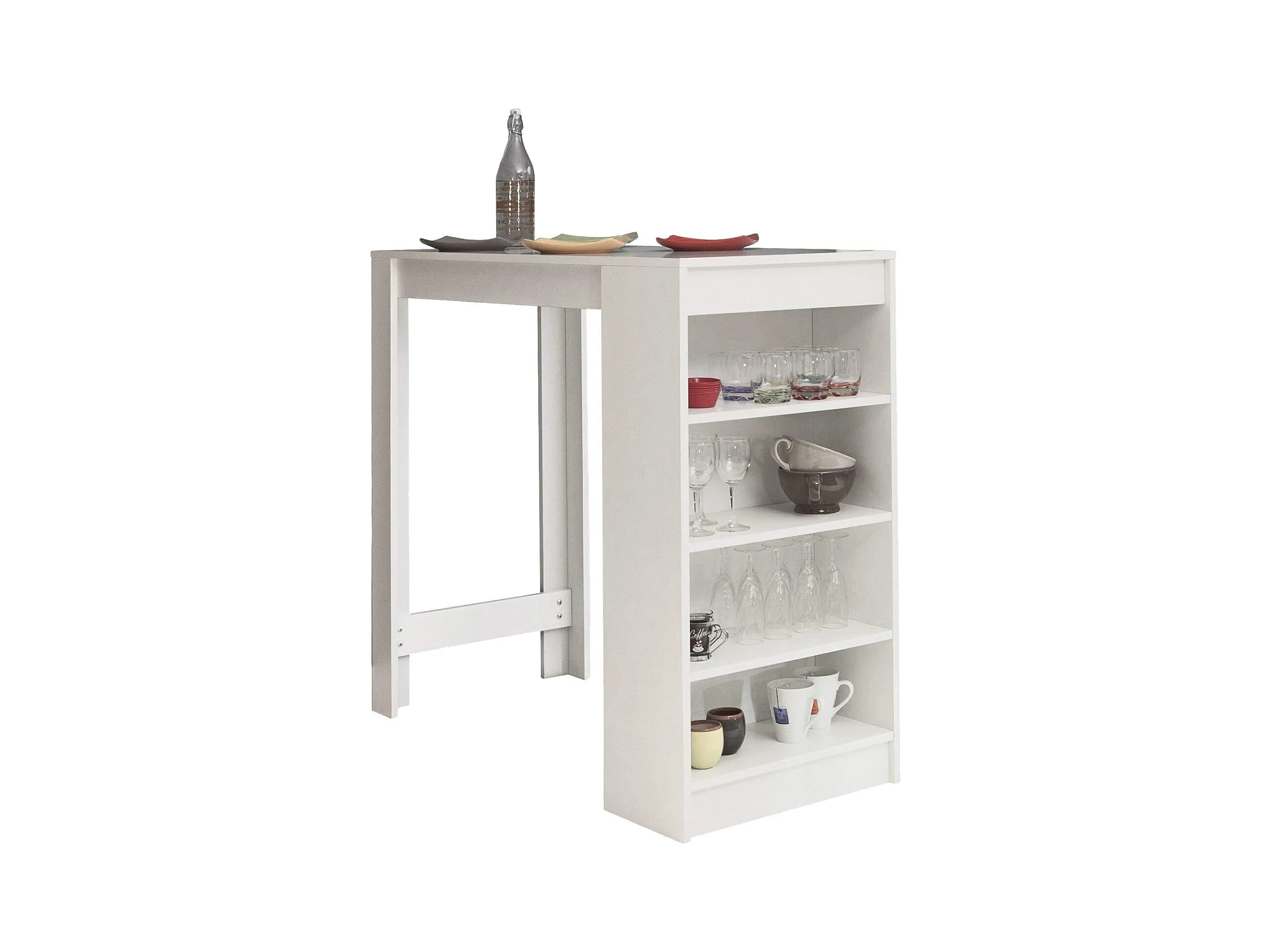 Mesa de Cocina Alta | Acabado en Melamina Blanco | Medidas: 120 cm Ancho x 50 cm Fondo x 105 cm Alto