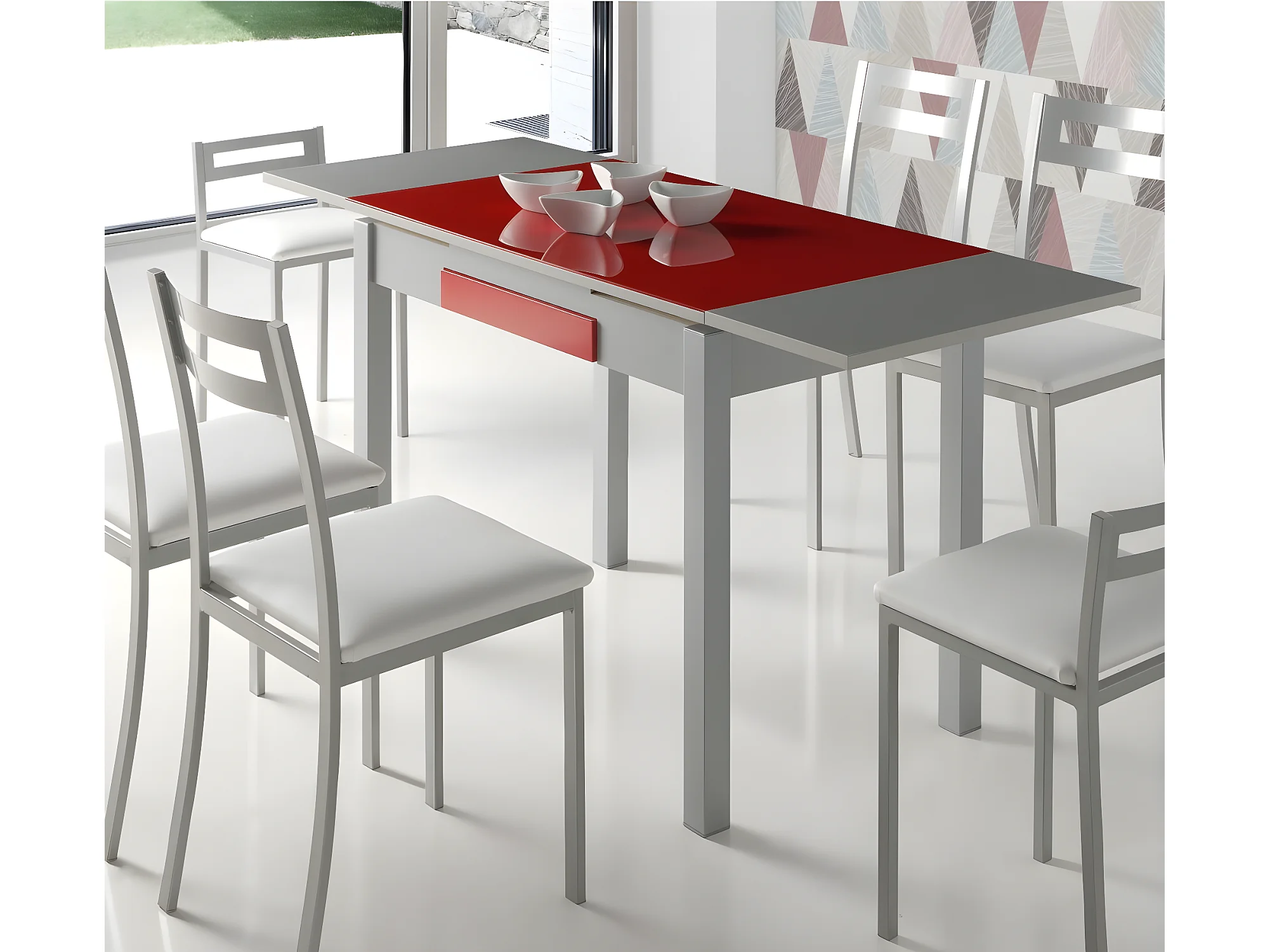Mesa de cocina extensible - MDF y cristal Rojo, 100/160x60x76 cm - TETRA