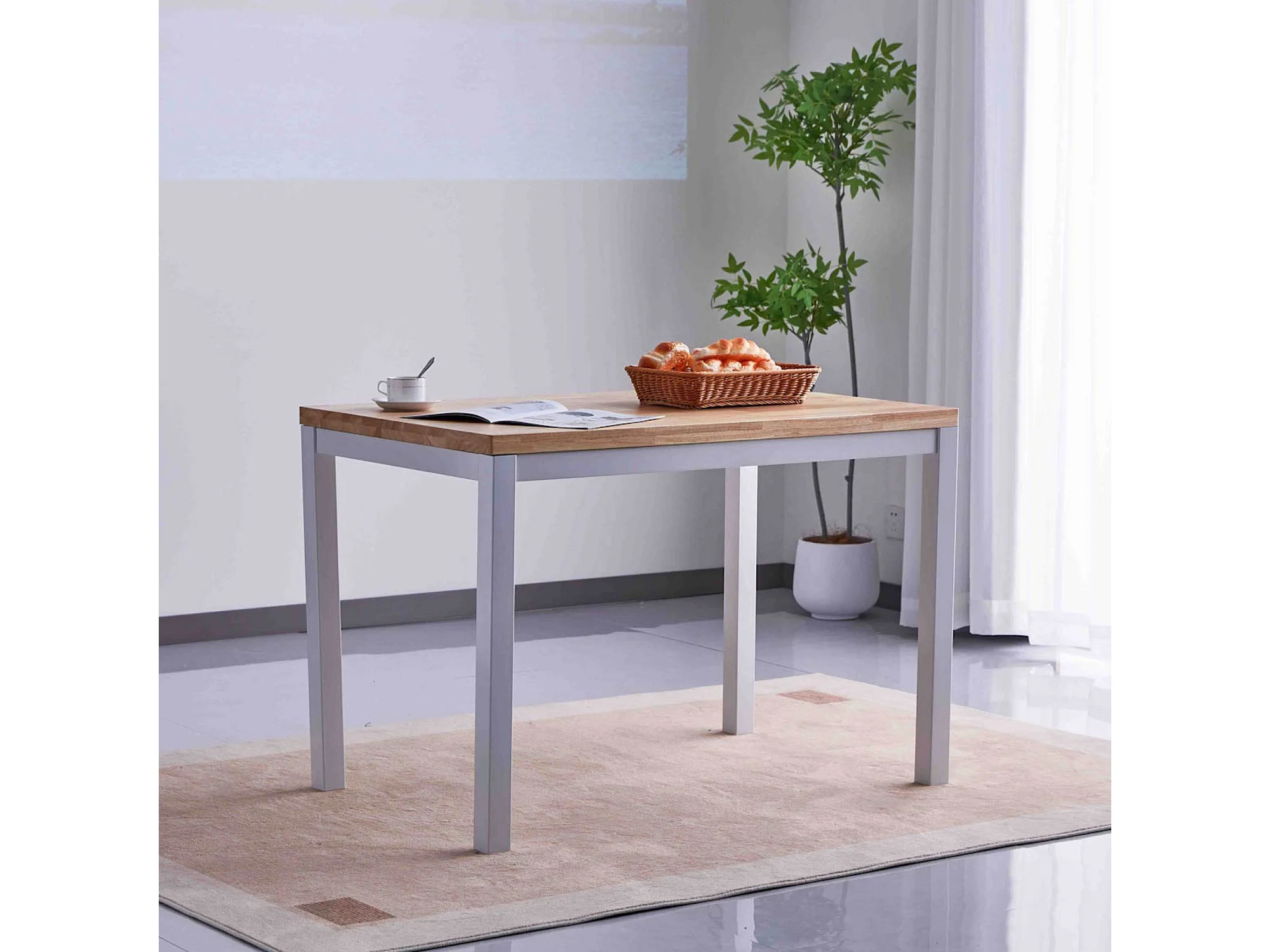 Mesa de Cocina Fija con Tapa de 3,6 cm de Grosor y Patas Metálicas Blancas -Medidas 110x70x75 cm