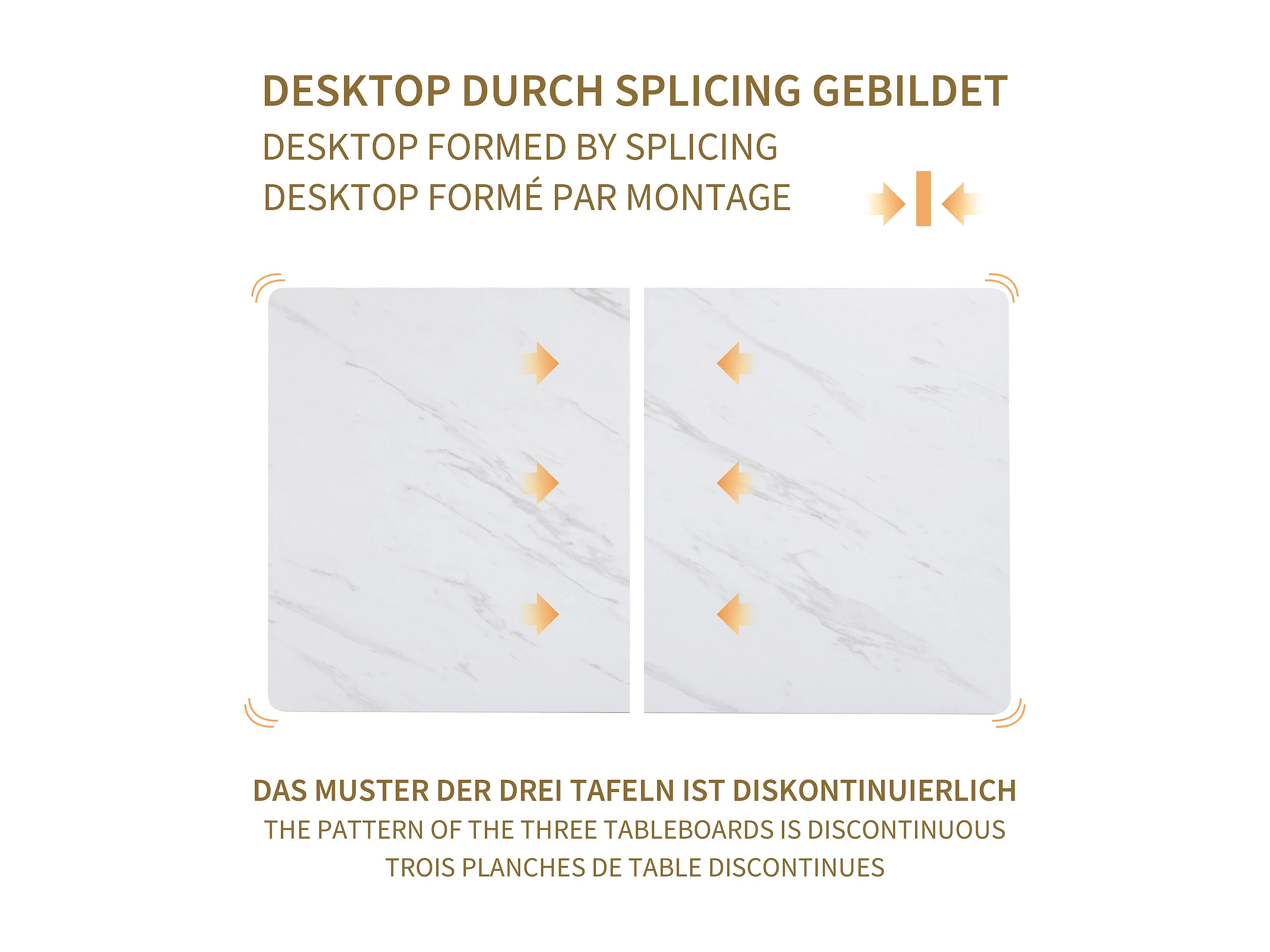 Mesa de comedor de MDF de diseño moderno para 6 personas con almacenamiento en blanco y dorado