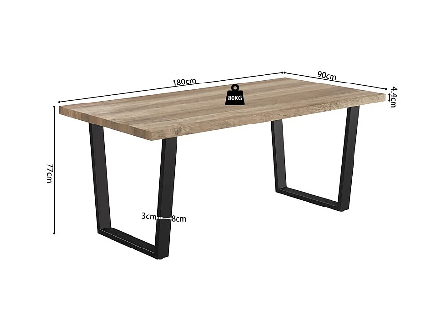 Mesa de comedor marco Y madera maciza pino y hierro 180x90x75cm