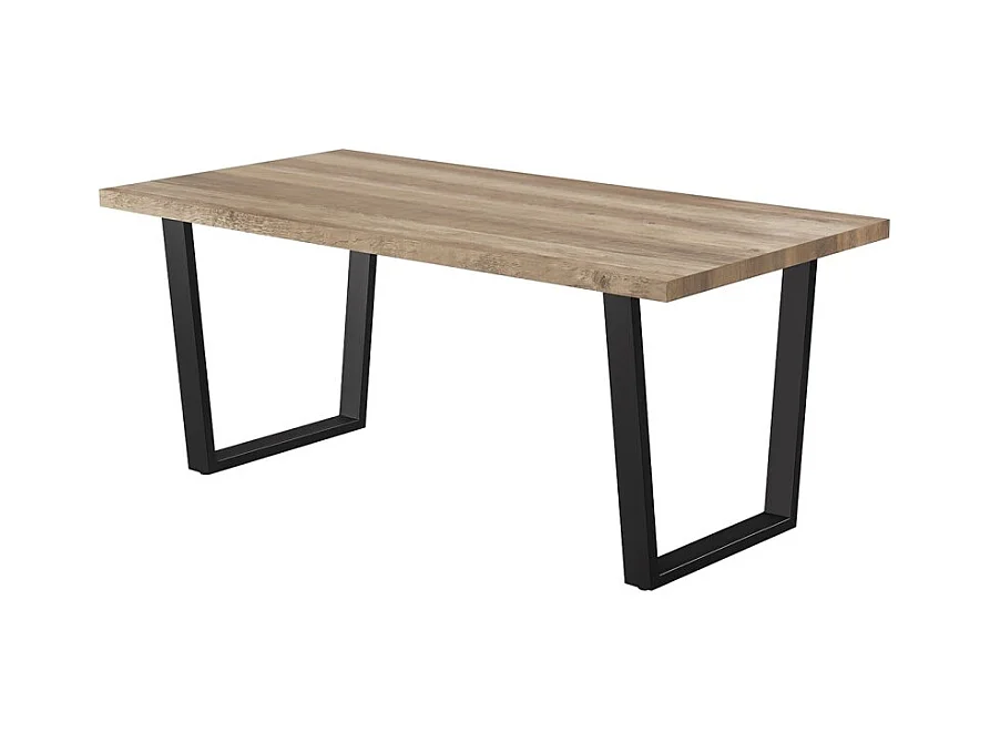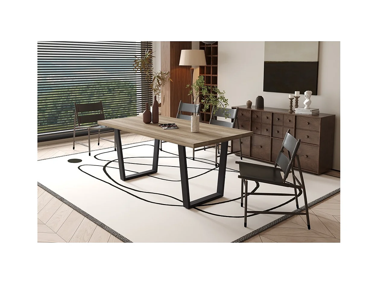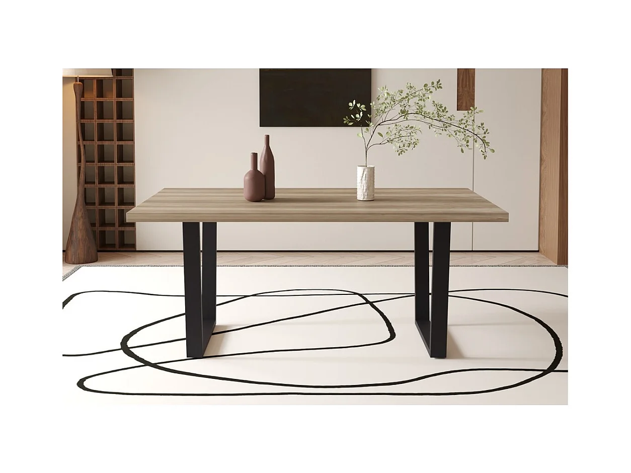 Mesa de comedor ALTONIA – 180x90 cm – Efecto madera de mango – Patas de metal – Diseño industrial y acogedor